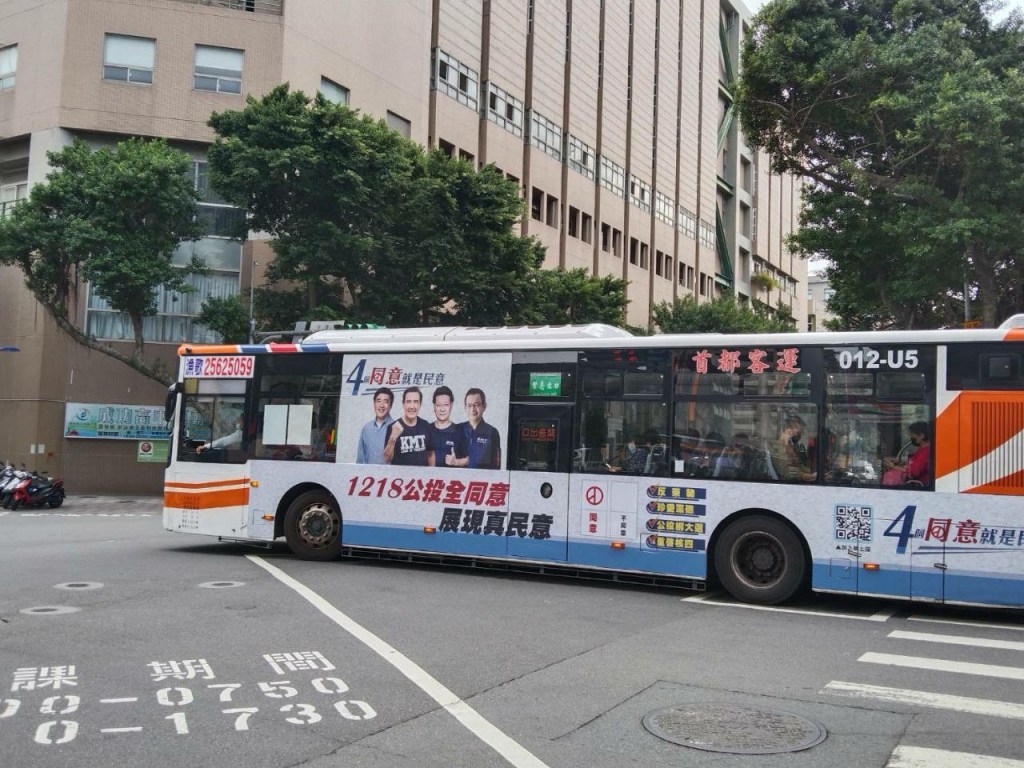 記者會中趙少康提及最近戰鬥藍在五十輛台北市公車張貼「4個同意就是民意」「1218公投全同意、展現真民意」的公車廣告,並且請求今日上午租用一部張貼公車廣告的公車前來中廣大樓前,以便展示給全國選民觀看,甚至聽說前一日台北市議會議長還親自出面協調,但公車處疑似遭受民進黨高層的壓力而不敢配合。趙少康表示難以理解,因為戰鬥藍不是無償要求配合,也已經提出6000元的租金,無奈台北市公車處依然不敢派遣相關公車前來,公車處說怕被責難。由此可見人民害怕民進黨的打壓已經到了噤若寒蟬的地步。