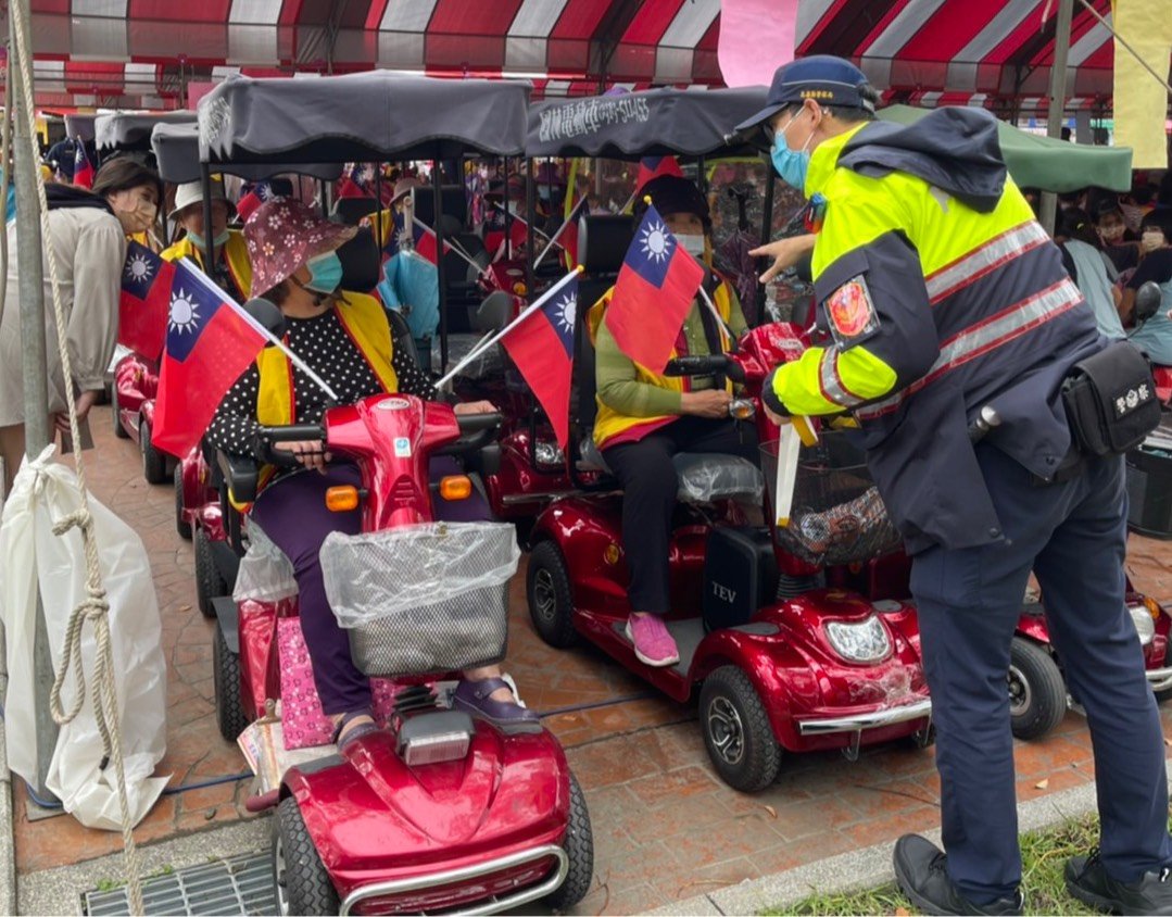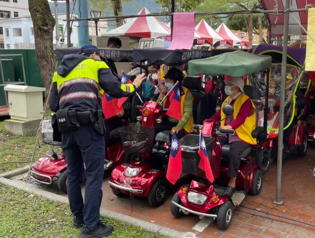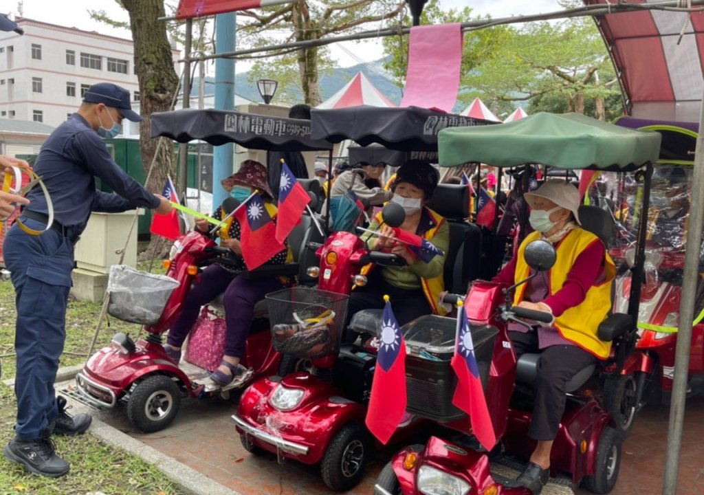 鳳林警分局有感電動輔助車因為體積小、速度慢且燈光比較不足,尤其在夜間通行的時候容易被其他用路人忽略,較易發生危險,鳳林派出所所長吳謹文利用110年鳳林鎮客家文化節的機會,向鳳林鎮代表吳徐素美帶領的鳳林鎮老人會電動輔助車踩街車隊宣導電動輔助車交通安全,同時由所長及分局第二組巡官許嘉宏協助黏貼反光標示、示範反光捲尺的使用方式,並發送反光膠帶,請長者們黏貼在家中電動輔助車、電動自行車或是腳踏車的車身側邊及後面,以提高警示效果,提升夜間行駛的安全。