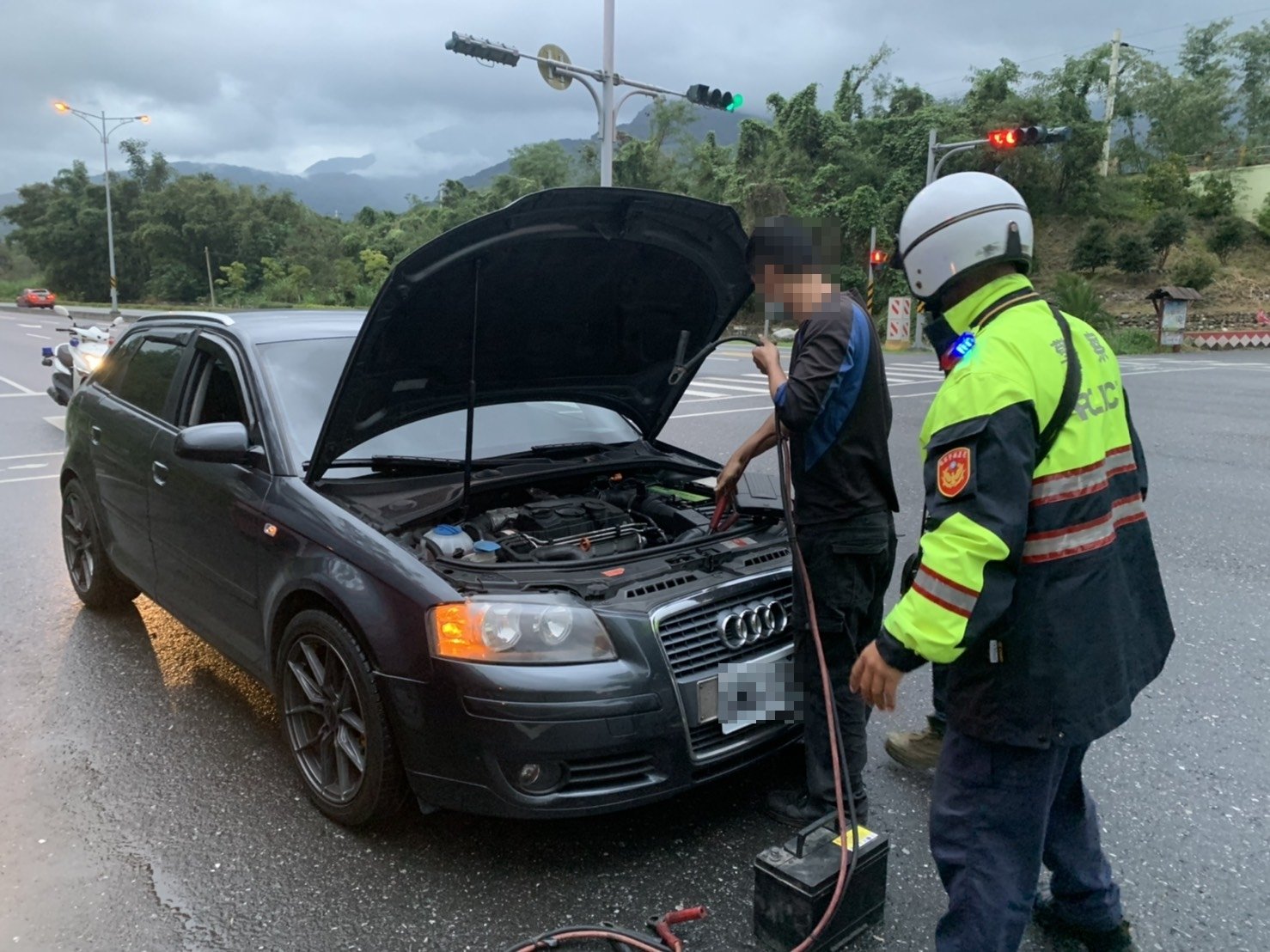 鳳林警分局大富派出所所長楊小明於日前值班時,發現派出所門口前有一部自小客車,拋錨於路旁需要救援,經所長前往查看暸解,民眾稱係從台東遊玩欲返回台北市,行經該路段台9線239.5K北上車道前發生啟動馬達故障,所長楊小明見狀主動發揮為民服務精神,協助通知轄內汽車修理業者處理及排除道路障礙。
