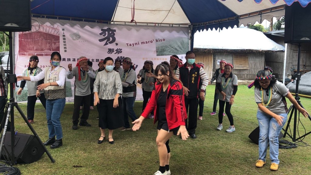 開幕祈福演出特別邀請溫泉部落頭目林仁賢吟唱、照服員黃寧領唱以及溫泉文健站耆老表演手語和舞蹈,徐縣長也展現親和力與表演者齊跳傳統舞蹈,場面相當熱絡,為今日展覽揭開序幕。
