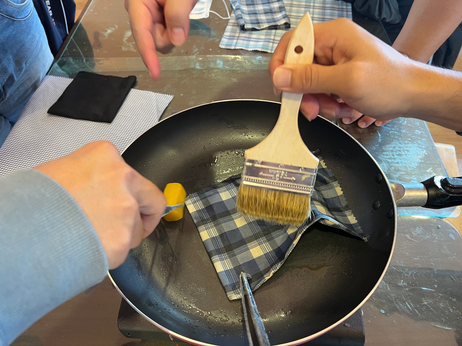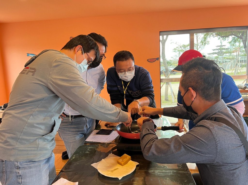 在新屋農博教育園區的碳索生活館,大家體驗蜂蠟布的製作,並由專人引導參觀。魏嘉賢市長表示,蜂蠟布的製作是將不用的布結合蜂蠟後成為生活的用品,包括保存或便於攜帶食物。透過觀摩活動希望市公所同仁能夠把減碳的概念帶入我們的生活與職場,並將環境氛圍帶回花蓮,未來的各項活動也將投入環境教育理念,並以環保減碳為目標。