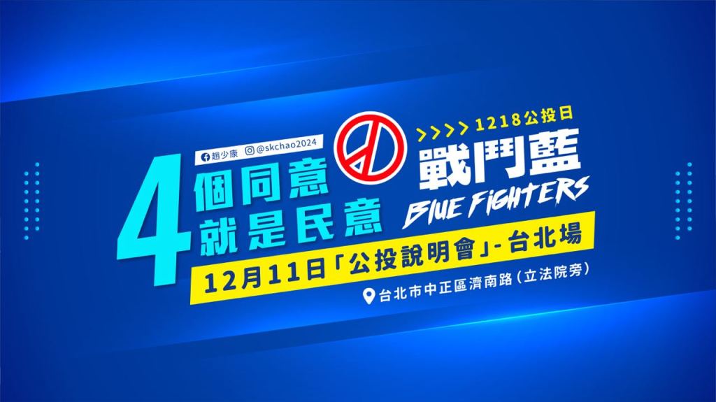 這場街頭開講的活動,持續到下午一點才意猶未盡的結束,結束前,趙少康特別預告了12月11日戰鬥藍在立法院旁濟南路舉辦台北場公投說明會,下午2點半到4點半,請大家一起來,大聲向蔡政府「說不」,當掉她的期中考,讓她好好反省。12月18日公投日, #四個同意就是民意,四個都同意,人民大勝利!並請大家能夠踴躍參加12月11日的公投說明會,更重要的是別忘了12月18日走到你的投開票所,投下 #四個同意就是民意。