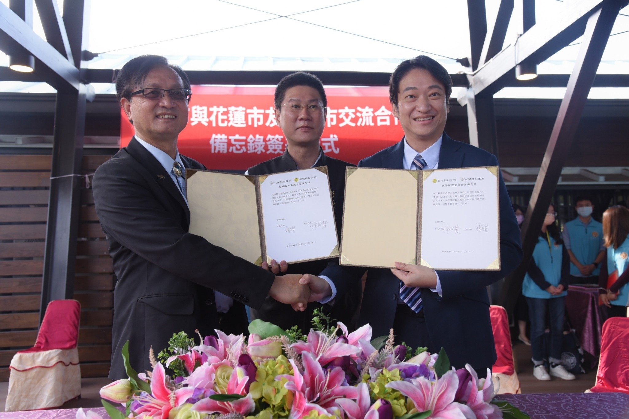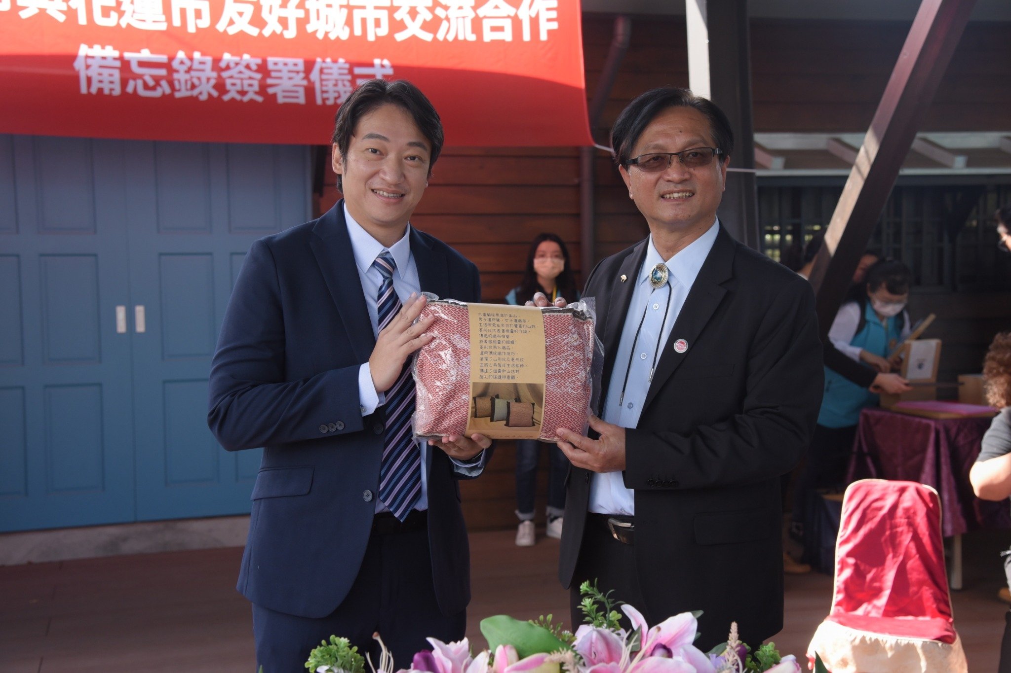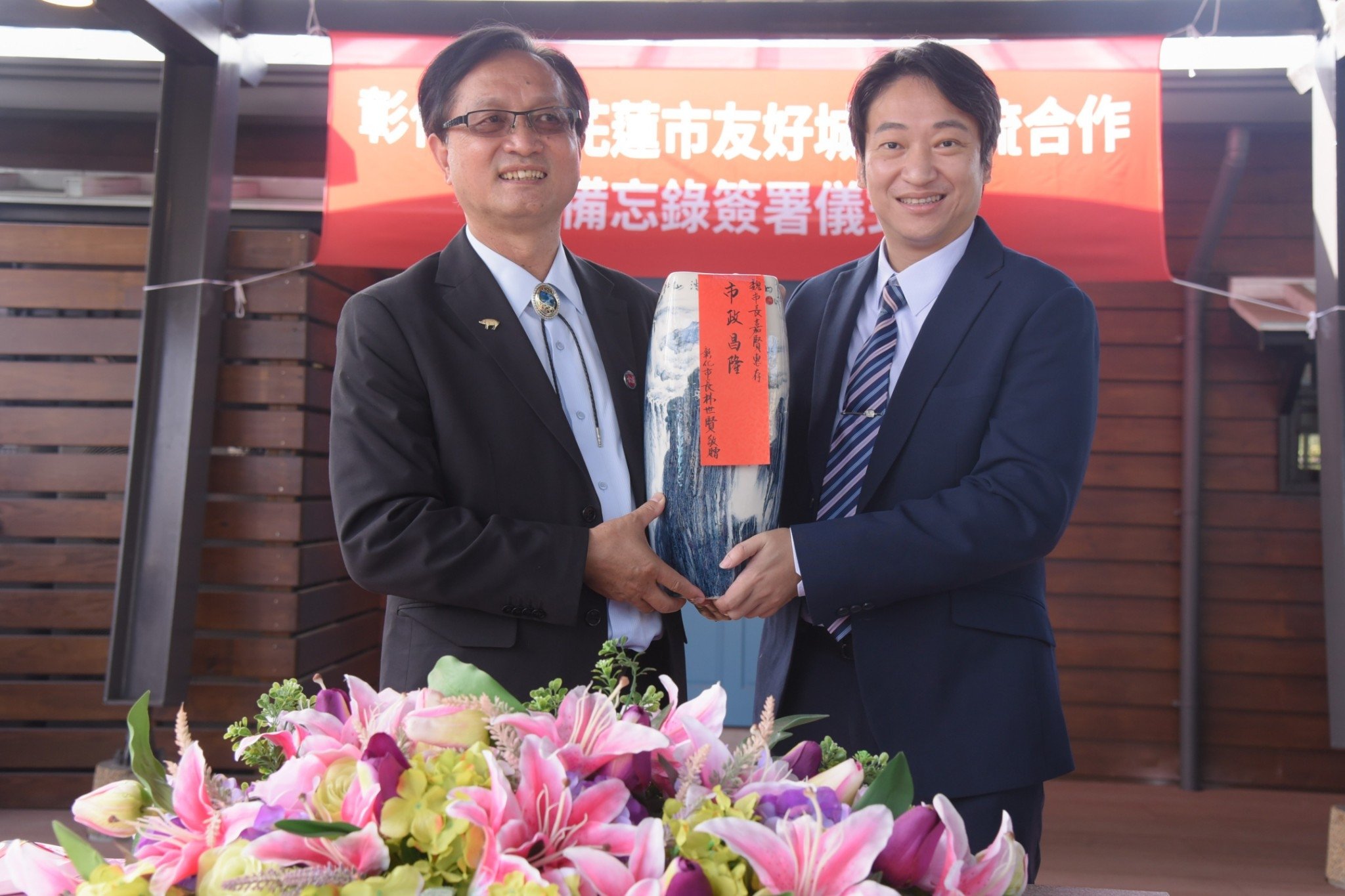 花蓮市長魏嘉賢今29日於戶羽機關車園區與彰化市長林世賢簽訂友好城市交流合作備忘錄,雙方期望兩市未來在文化與觀光等面向加強市政經驗交流與分享,共同發展觀光城市願景。