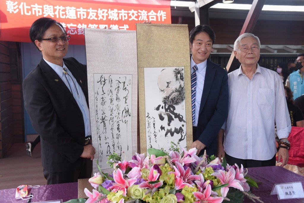 11 月 29 日上午9時30分許,魏嘉賢市長帶領市政團隊抵達戶羽機關車園區,受到彰化市長林世賢及彰化市民代表會主席陳文賓等人的熱情歡迎,花蓮縣議員魏嘉彥也陪同一起,見證歷史的一刻。會場並有「黑手畫家」黃茂松及彰化縣「磺溪九怪」書會召集人趙宗宋的現場揮毫,兩位大師將字畫送給魏嘉賢市長,也讓簽約儀式更增添藝術氛圍。