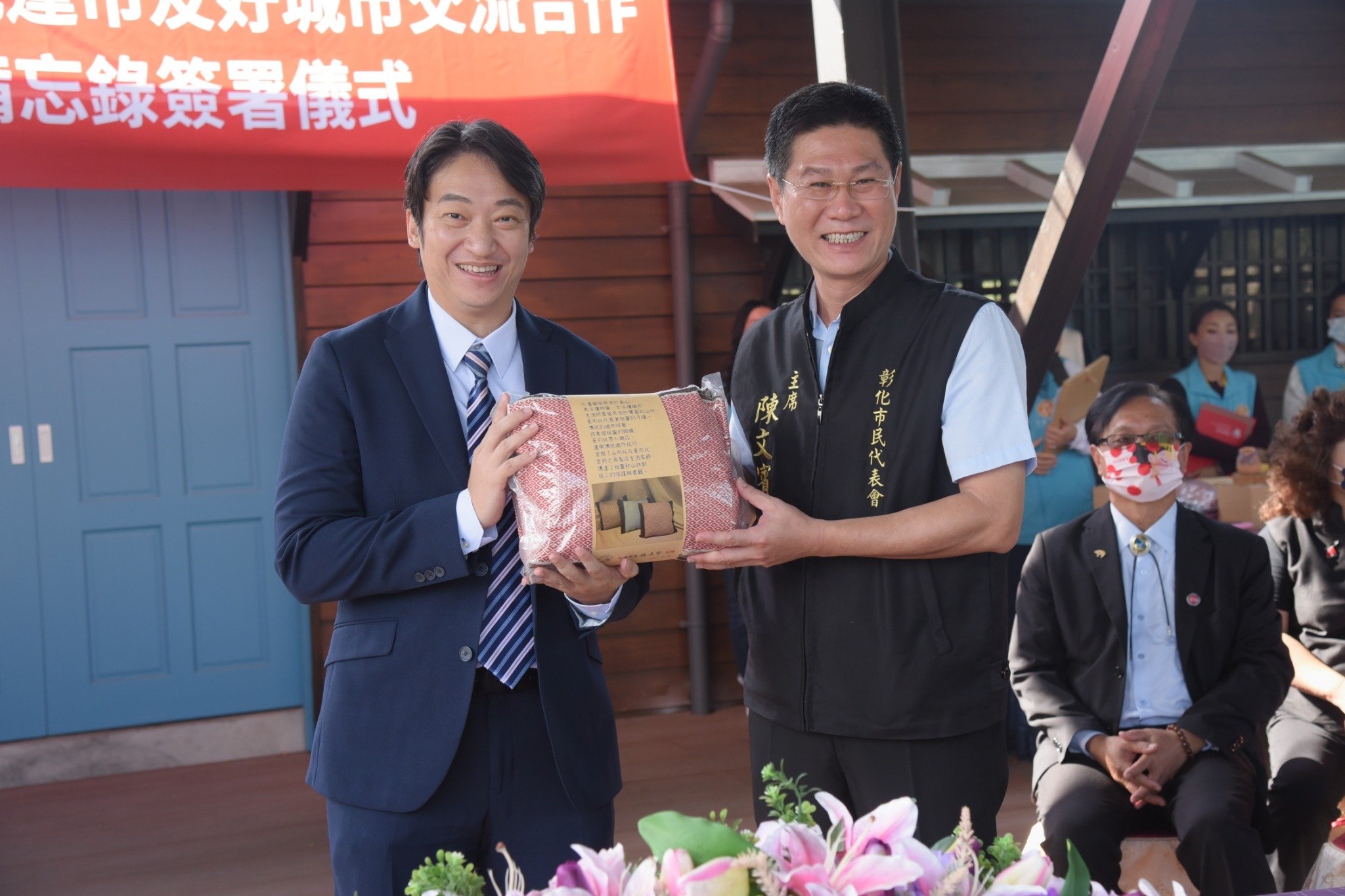 雙方最後互贈紀念品,魏市長致贈原住民陶壺、太魯閣織布畫,以及太魯閣編織對枕,他說,這些伴手禮均為花蓮市這些年來推展原住民手工藝研習的成果,市公所鼓勵工藝師建立行銷在地特色,希望透過研習或展示活動來提升在地品牌的能見度。彰化市長林世賢贈送的紀念品則為彩繪花瓶,以及彰化 300 古城.慶典之都~提燈踩街的一對花燈。