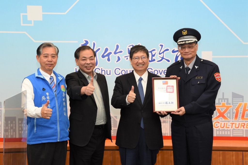 另縣長也感謝新竹縣各民防中隊長平日堅守崗位、熱心公益,協 助警察執行勤務,維護本縣治安工作,會中特頒發各中隊長「感謝 狀」1幀,以資鼓勵。