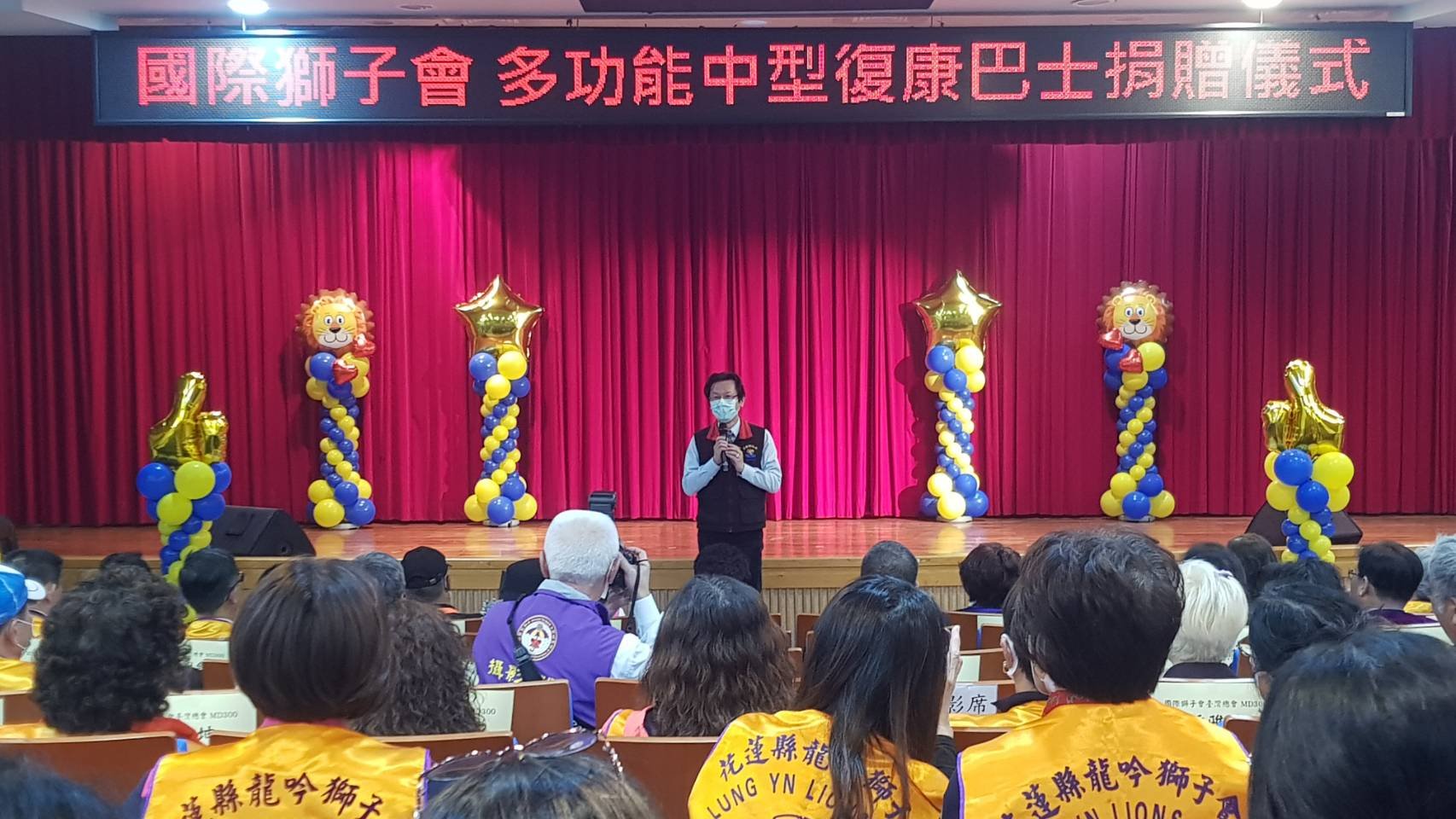 今7日在花蓮縣衛生局朱家祥局長的見證下,見證國際獅子會MD300臺灣總會總監議長郭李桂香女士邀請國際獅子會MD300(邱良進、陳峰基、張建榮、李正邦、林錦鏘、葉浴堅、陳燕招、歐麥水雲、廖黃淑琴、鄭聰江、鄭錫沂、王文全、吳隴、李春季、王清松、陳佳芳、陳明芳、高國樹、何伊莉等員)、臺灣總會國際獅子會300(陳鍊成、游世一、辜榮杰、陳賢能、林淑娟、謝賀全、陳梓銘、張兆榮、張邱美嬌、蘇英美、宋傳威、陳正勳、葉其昌、胡輝輝等各區總監)及國際獅子會300F區(花蓮龍吟獅子會會長黃秀灯暨全體會員)等36位獅友們共同發揮善心義舉,捐贈一部多功能中型復康巴士,共譜一段社福良緣。