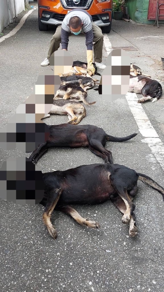 第二天上午,田女於現場附近進行搜尋,再次尋獲5隻死亡犬隻,總共尋獲9隻死亡犬隻,剩餘2隻存活,3隻下落不明。