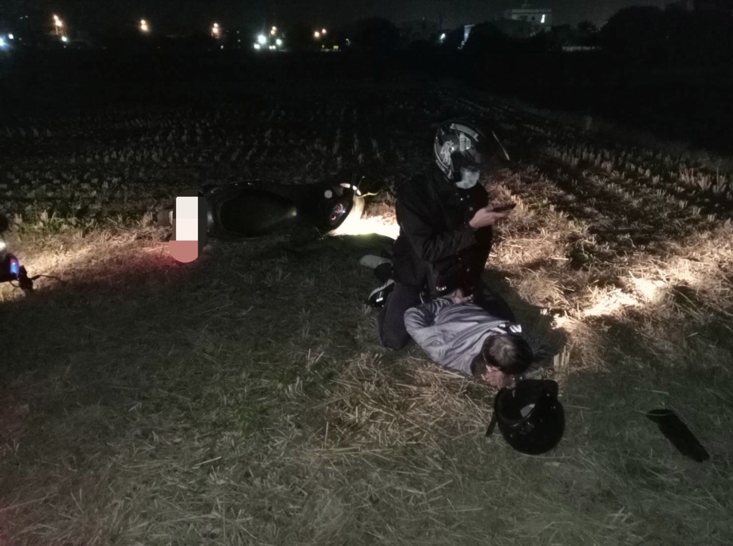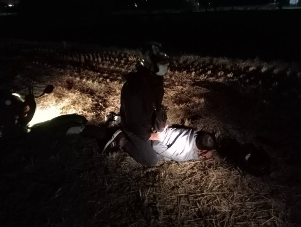 劉嫌於日前12月7日趁黑夜返回苗栗,終於讓辛苦埋守的刑警發現,惟劉嫌為逃避警方拘捕,竟然騎乘機車衝入稻田中,員警3人亦騎車跟著衝入稻田,在黑暗田中追逐數百公尺後,歹徒機車撞到水泥田埂自摔,隨後之刑警見狀,立即將警用機車放倒,避免跟歹徒車輛一樣撞上田埂,員警並立即在田間將劉姓嫌疑人壓制逮捕。全案詢後依刑法竊盜罪嫌移送苗栗地檢署偵辦,指揮檢察官並向法院聲請羈押劉嫌獲准。