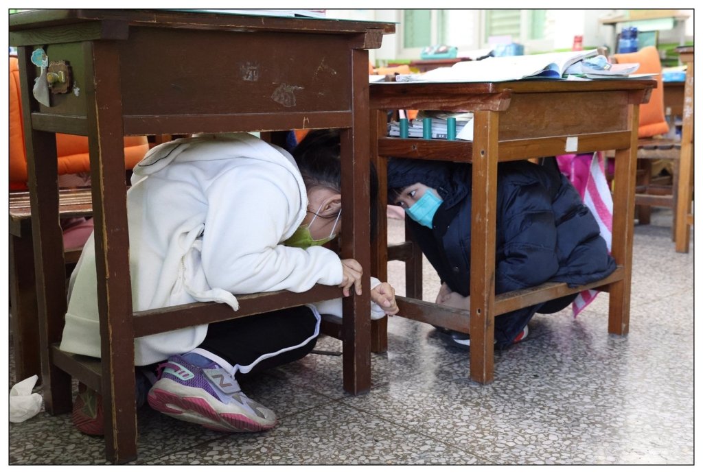 學校當下偶有慌亂,但很快速發揮平時訓練智能,師生均先採就地避難掩護,確實把握「趴下、掩護、穩住」三項要領,隨後在學校災害應變組織指揮官統一下達疏散指令之下,學生掌握不推、不語、不跑且快速至指定地點集結並清點人數,對於複合式災害(火災等),能立即處置並啟動通報系統。