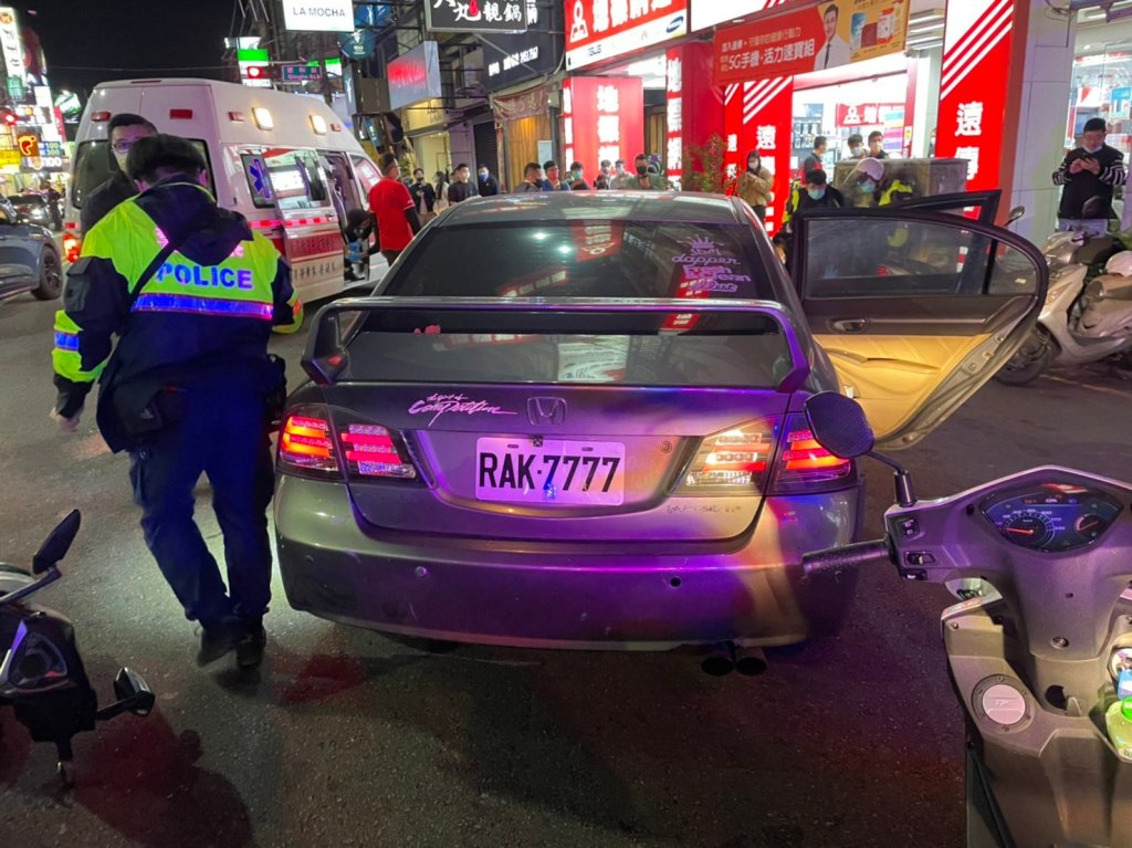 中市警第六分局市政所員警巡經西屯路2段與河南路口,發現1輛自小客車懸掛壓克力牌照,遂尾隨其至西屯區福上巷,將張姓駕駛(87年次)攔下盤查,駕駛假意配合警方盤查之際,加速油門駛離,過程中衝撞員警及停放一旁警用機車,該車快速沿福上巷駛離,行經福星路與福上巷口衝撞行駛中2輛機車,造成其中1名騎士右腳踝擦挫傷,員警旋即將張嫌拖下車壓制逮捕,經查其為詐欺、妨害自由、竊盜等3案通緝犯,全案依偽造特種文書、詐欺、妨害自由、竊盜等通緝及妨害公務移送偵辦。