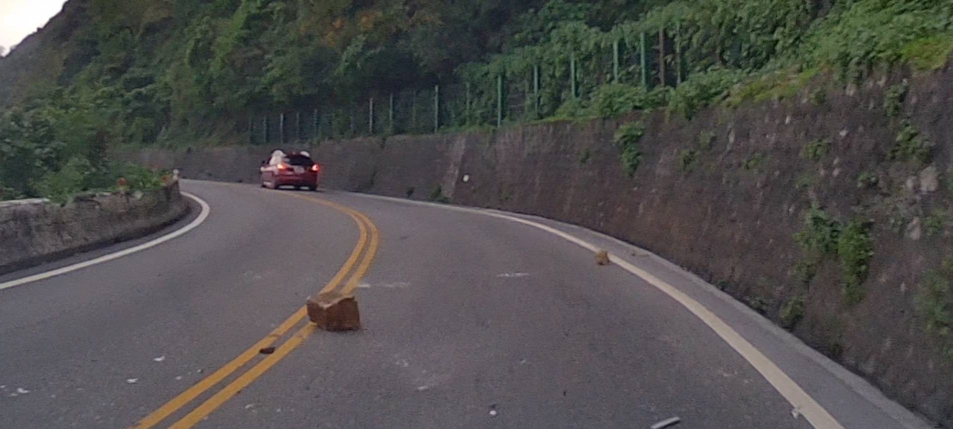交通警察隊提醒用路人勿酒後駕車,山道路落石多,依速限行駛,注意車前突發狀況並與前方車輛保持安全距離,以維行車安全。