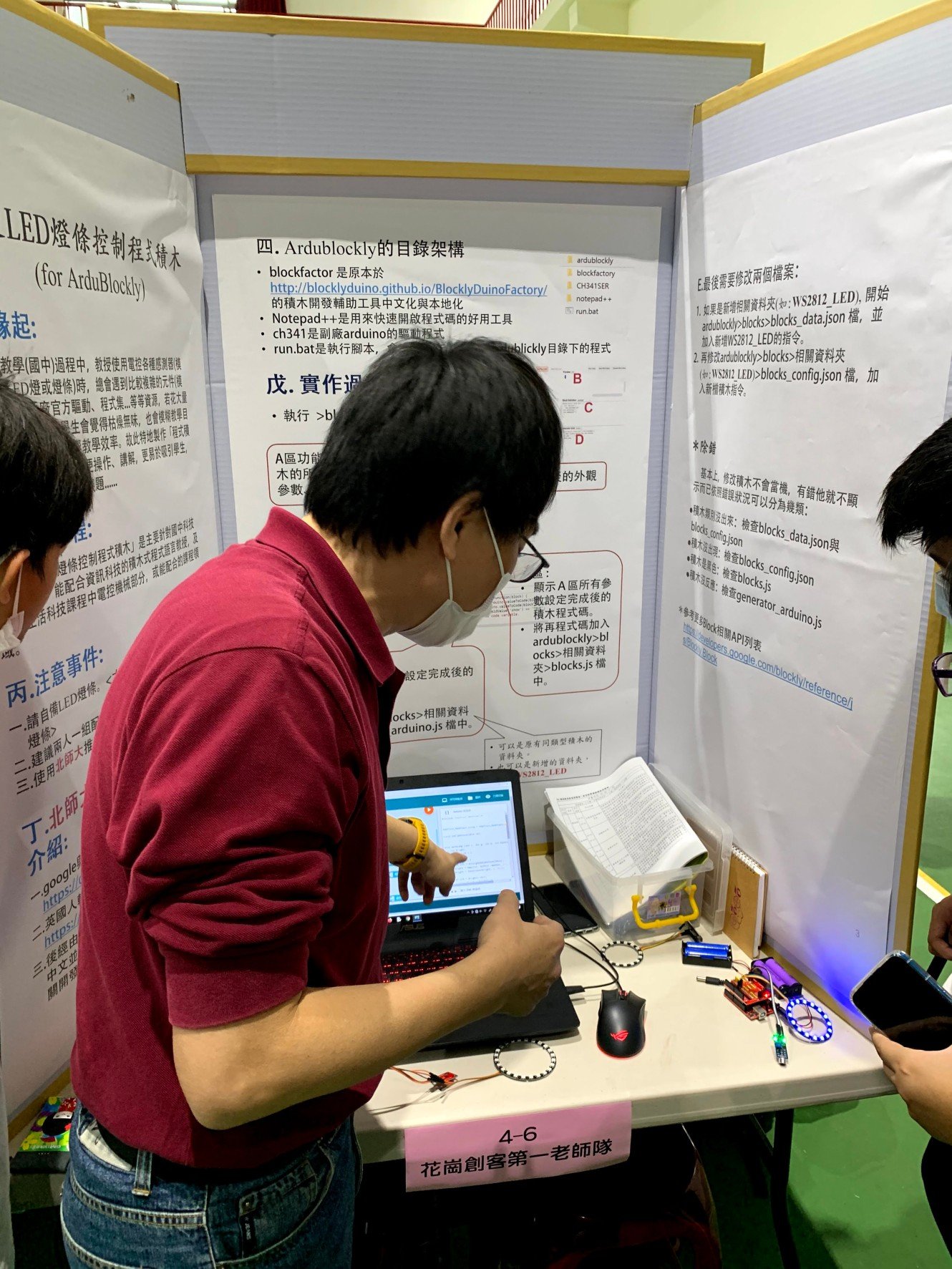 科技融入教學已成為科技教育趨勢,為推動科技融入學習之示範,本賽事亦開闢教師及社會人士競賽區,邀請教師們或業界創客師共同加入競賽行列,發表創意教材教具與教學教案以豐富各領域教學現場,讓教師們能運用科技融入解決問題,進而培養學生邏輯思考、解決問題能力。優秀教案及教具作品賽後將製作教材書籍,以提供為日後教學活動上參考。今年報名參賽隊伍達63隊,參賽人數270多人次,參賽隊伍數逐年增加,從中可見花蓮縣政府積極推動智慧教育,能讓更多學生參與科技教育競賽展現豐富科技教育成果。