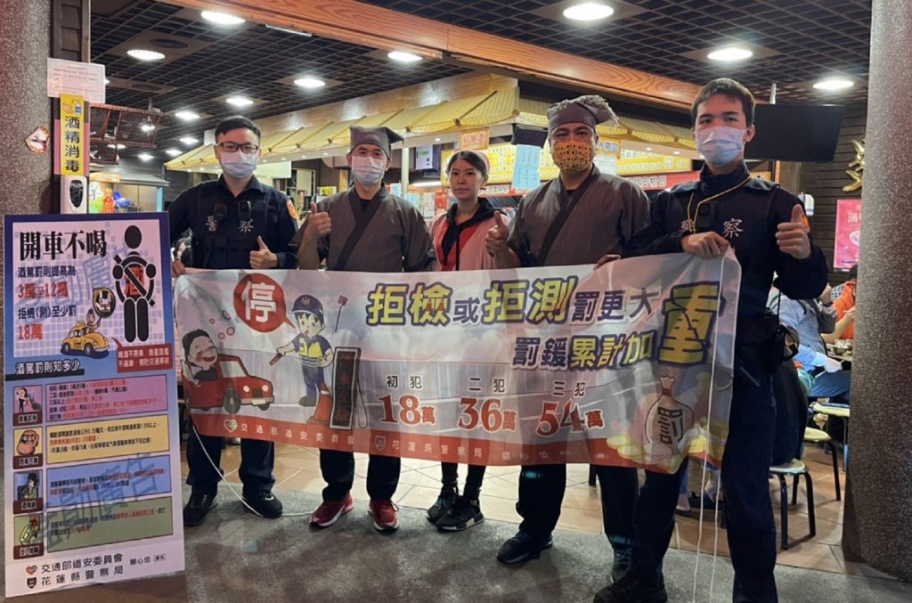 為有效防制跨年連假酒駕肇事,保障用路安全,吉安警分局秉持宣導取締並重精神,配合全國同步防制酒駕專案,針對交通熱點、易發生酒駕路段規劃執行交通稽查,員警走入飲酒場所與民眾面對面溝通,並運用轄區電視牆強化宣導。