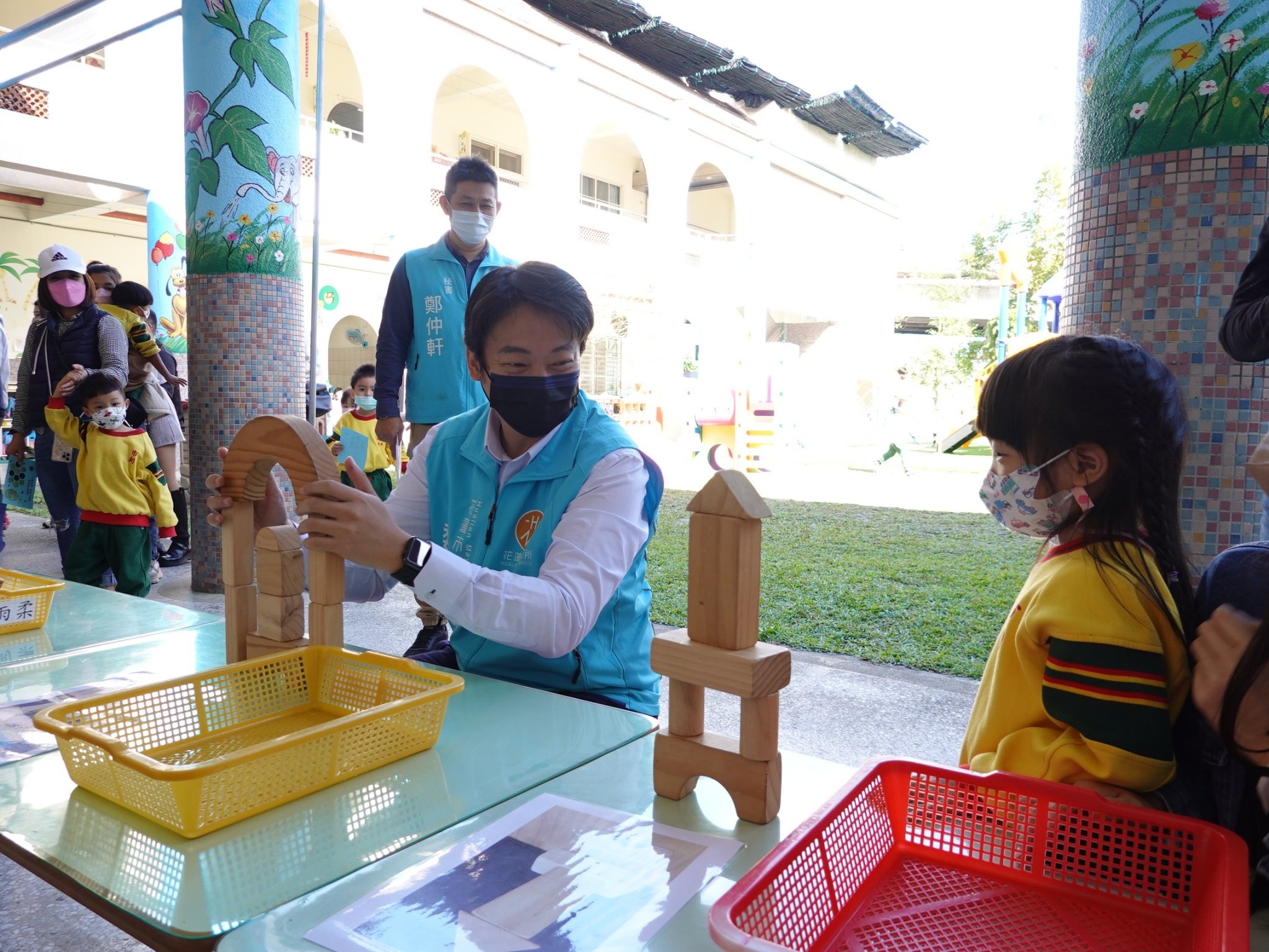 接近學期的尾聲,花蓮市立幼兒園今日舉辦小班學習區停看聽成果展,透過老師設計的闖關遊戲,讓孩子動手也動腦,把所學應用在遊戲中。市長魏嘉賢也前往關心孩子的學習狀況、和孩子一起闖關同樂,看到每一位孩子的表現,他也豎起拇指比個讚。