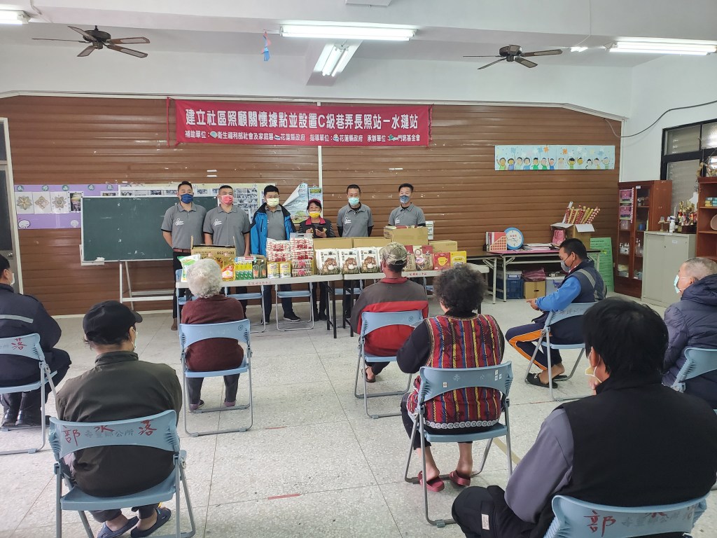 寒風凜冽但是現場每個人充滿溫暖的熱血,今(7)日上午10點在理事長鄭重生的帶領下,一群東台灣旅遊美食協會的幹部帶著生活物資來到壽豐鄉水璉村,在水璉長照站由村長蔡素月及村民接受,將物資轉送到村內獨居長者及弱勢家庭。