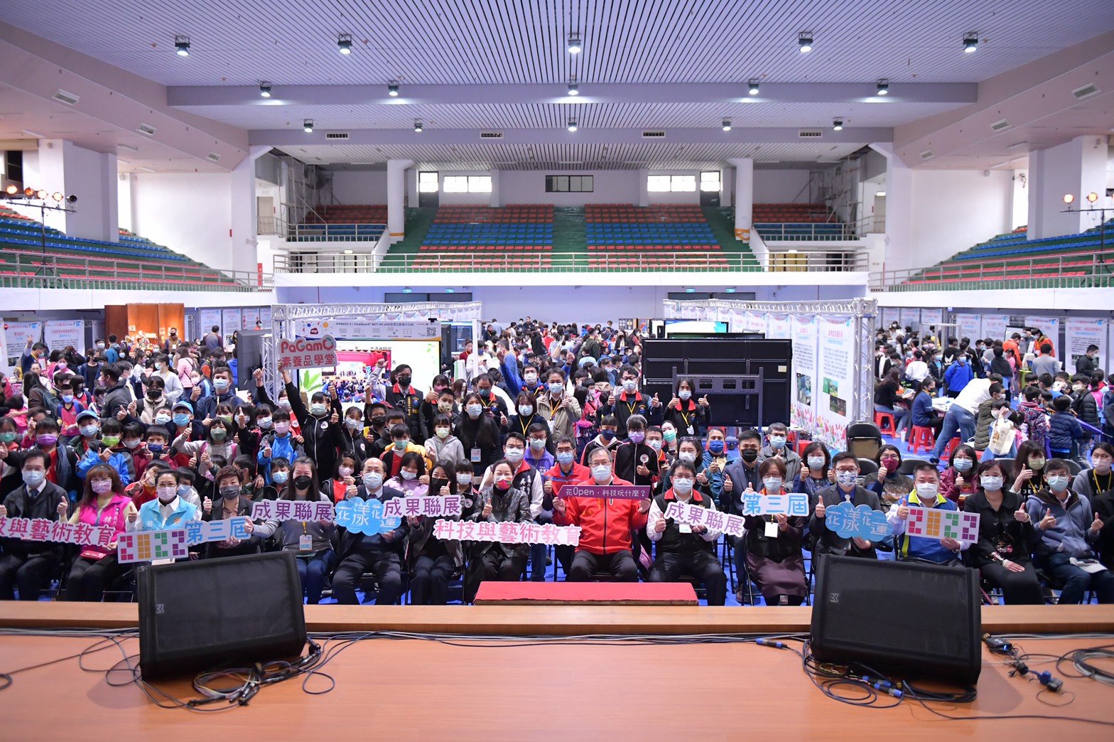 花蓮縣政府連續兩年辦理科技教育與人文藝術成果聯展,今(7)日於中正體育館辦理「花蓮縣2022科技與藝術教育成果聯展」,本次成果展主題以「花漾花蓮」,活動副主題為「花Open,科技玩什麼」,現場80個攤位展示花蓮多元豐富的學校特色,縣長徐榛蔚到場致詞,肯定花蓮學子在外表現拔得頭籌,讓全國看見花蓮智慧教育的行動力。