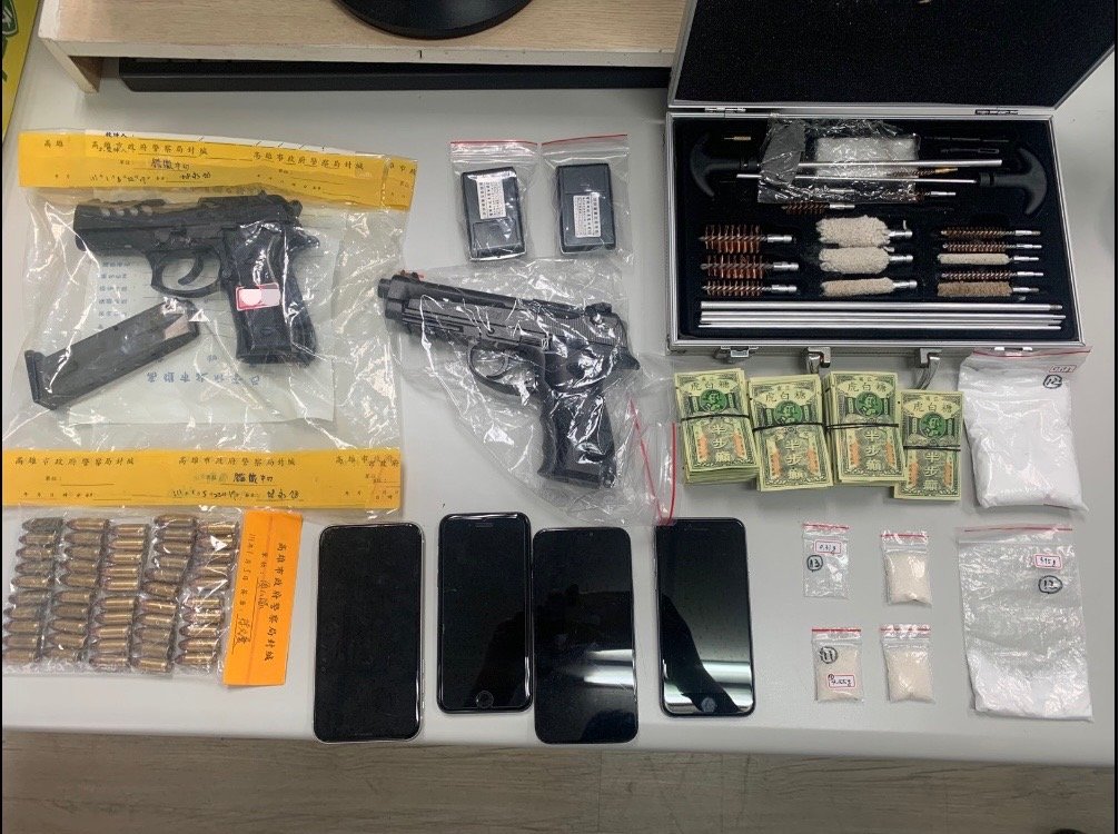 專案小組歷經多日跟監埋伏蒐證,掌握蔡嫌藏匿處所後,持臺灣高雄地方法院核發之搜索票,佈署警力進行攻堅,一舉逮捕在場之犯嫌蔡○○、呂○○、王○○及許○○到案,執行搜索後查扣手槍(含彈匣)1支、子彈51顆、毒品K他命6包(毛重82.5公克)、毒品咖啡包35包、空氣手槍1支、擦槍工具1箱、電子磅秤2台、手機8支等證物,全案依違反槍砲彈藥刀械管制條例、毒品危害防制條例罪嫌,移送臺灣高雄地方檢察署偵辦;另許嫌為臺灣橋頭地方檢察署發布之槍砲、傷害案通緝犯,依法移送橋頭地檢署偵辦。