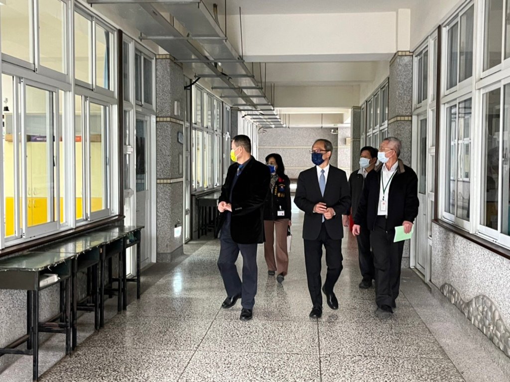 考選部部長許舒翔及花蓮考區典試委員吳新興在考選部政風室主任蔡萬隔、花崗國中校長李恩銘及縣府人事處處長曾淑芬等人陪同下巡視花崗國中試區,部長及委員對於試區環境予以肯定,同時慰勉試務中心工作人員辛勞。