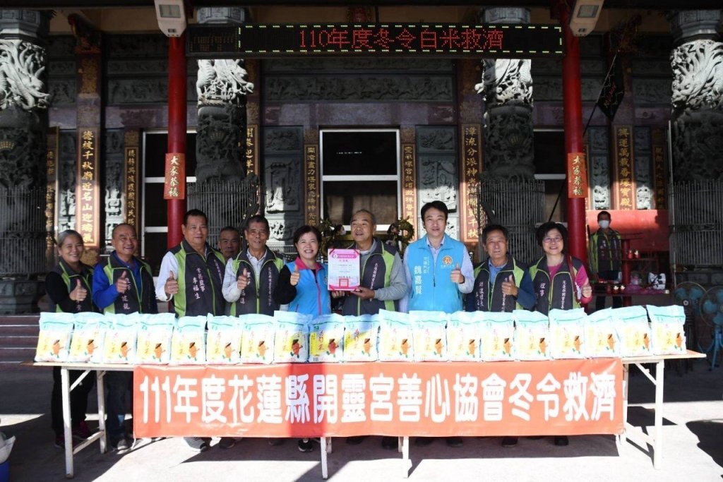 農曆春節將至,花蓮開靈宮善心協會有感於吉安鄉公所「物資捐贈平台完善健全」,更落實即時救助和防疫送達到位發放。特別於今(9)日上午關懷鄉里冬令救濟行動中,捐贈2500斤白米傳愛至吉安鄉,希望透過公所物資捐贈平台,到位關懷每一戶弱勢家庭。捐贈儀式中,鄉長游淑貞親自致贈感謝狀給主委李偉誠,表達滿滿的感謝之意,以及對於吉安鄉的支持與鼓勵,也允諾會掌握關懷黃金時效,讓弱勢戶享受到開漳聖王的溫心祝福。