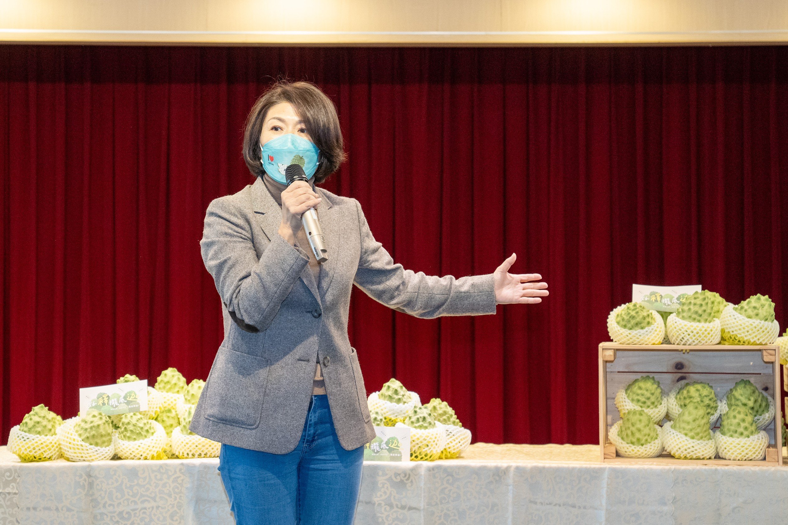 饒慶鈴表示,去年初因疫情影響鳳梨釋迦銷售量,感謝盧市長幫忙,當時只預期賣3000斤,盧市長化身為最強的推銷員,喊出買到賺到、挺農民拚經濟不分縣市,一口氣就賣了5萬多斤;先前也攜手上個產季的團購王侯友宜市長,讓更多北部民眾品嘗鳳梨釋迦;昨日再與金門縣長楊鎮浯合作,透過農會超市通路販售。今日感謝盧市長再度相挺,除展現女力首長挺農民、拼經濟的暖實力外,更集結在臺中來自臺東的運動員選手,聯袂站出來力挺家鄉,傳達各界力挺態勢,為臺東鳳梨釋迦打開行銷通路。