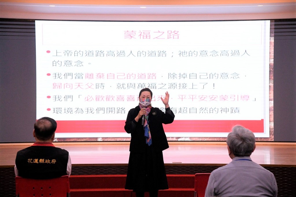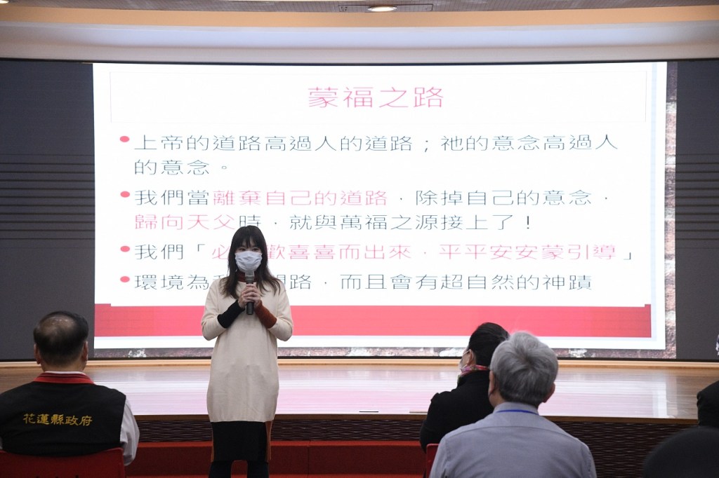 花蓮真理堂的彭智永牧師分享愛是永不止息,可以看到縣長對於花蓮縣民的大愛與付出,並表示花蓮是塊受到祝福的土地,期許花蓮變得更好。