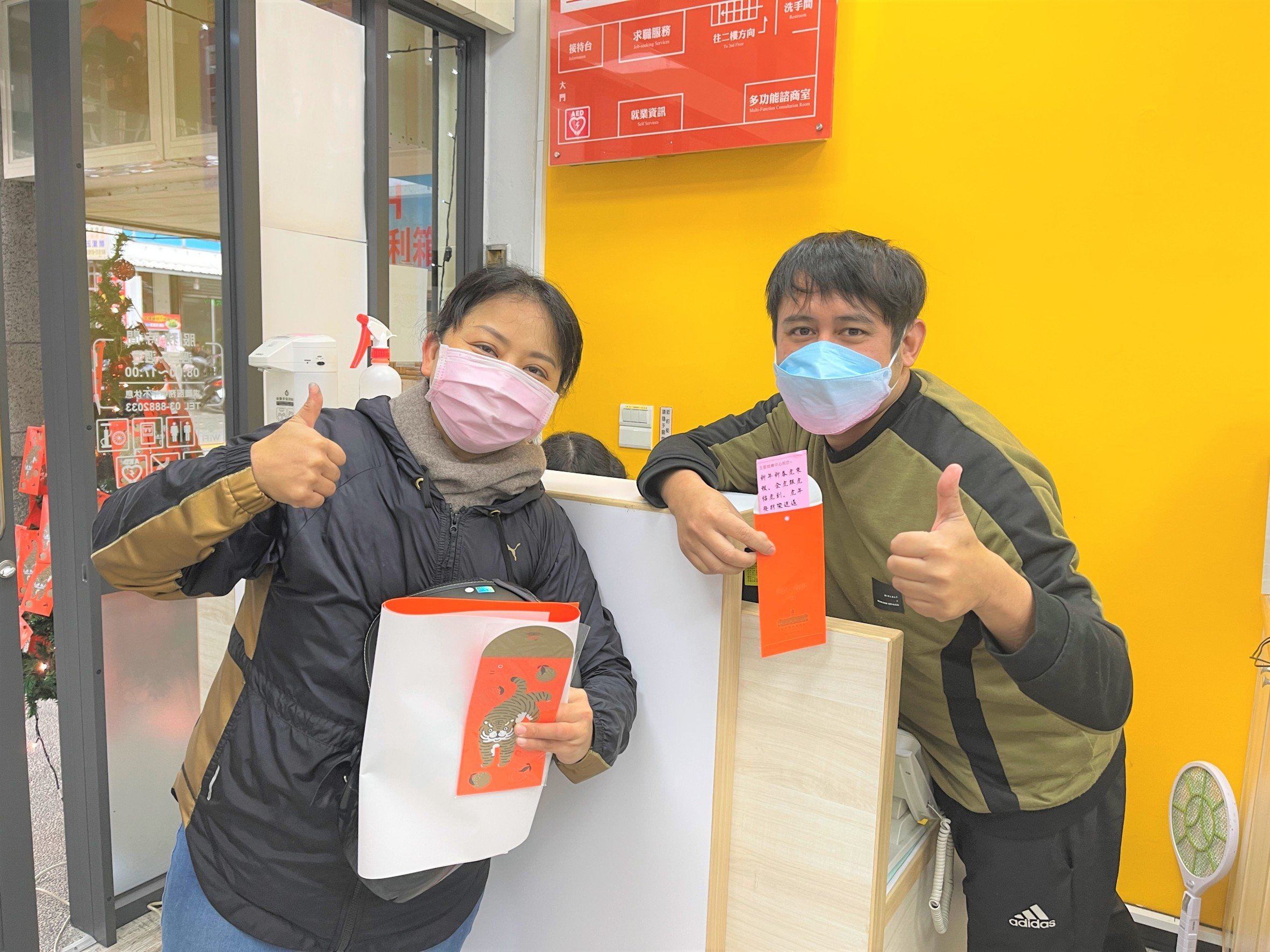 玉里就業中心觀察,一般農歷年前臨櫃求職民眾較平時減少,為鼓勵民眾踴躍求職登記,把握年前就業機會,由工作同仁創想發揮巧思,利用聖誕節布置的聖誕樹再改造成好運樹,掛上裝有各式小禮物及吉祥話紙箋的紅包袋,營造春節及抽獎的節慶氛圍,讓每個進到就業中心民眾都為之驚喜,求職還有禮物可以拿,十分貼心。
