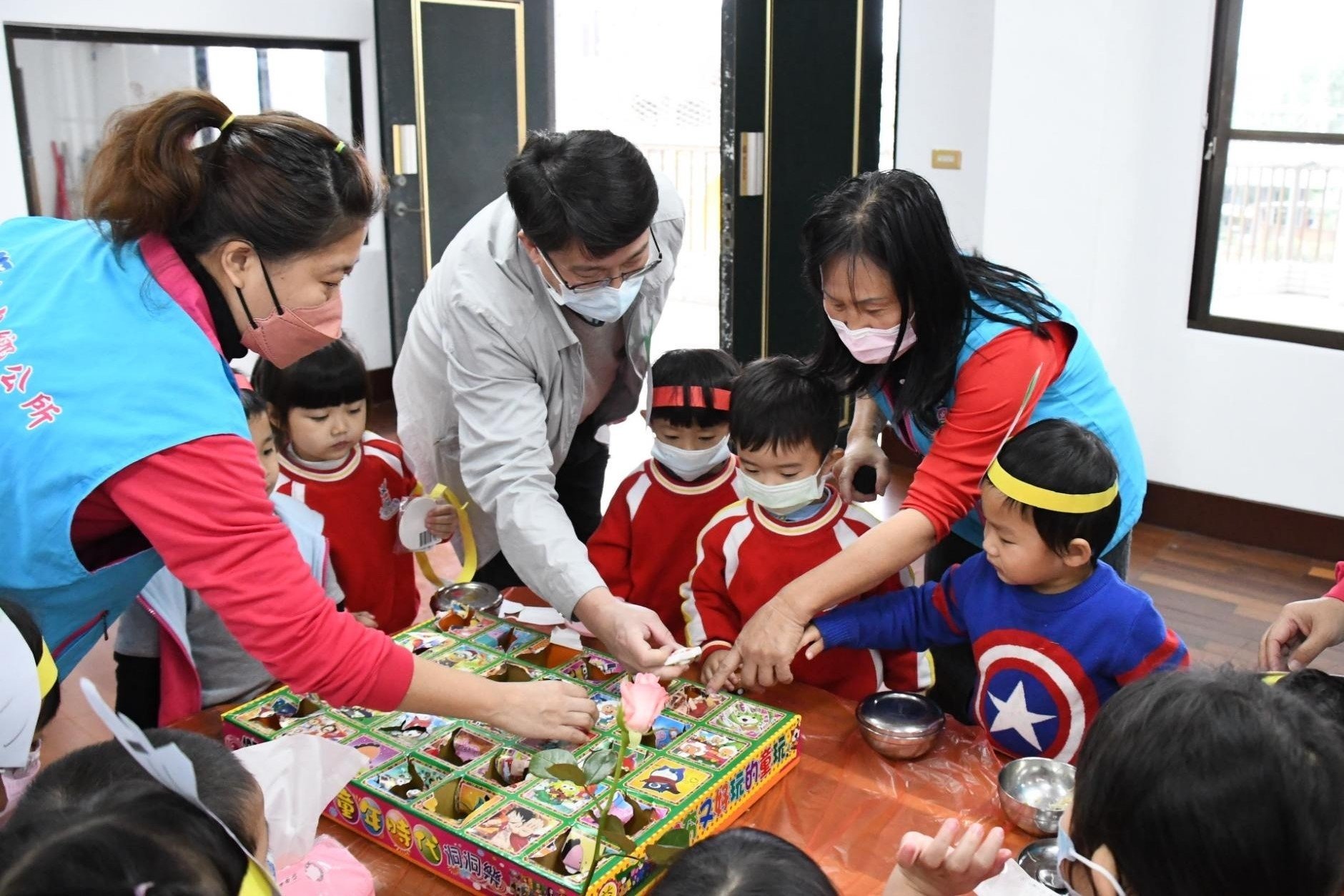 幼吾幼以及人之幼,為讓鄉幼孩子們感受農曆年的節慶歡樂,吉安鄉立幼兒園於14日中午舉辦「圍爐辦桌啦!」活動,邀來鄉長游淑貞、鄉公所課室所叔叔阿姨們,與全校師生圍爐共享團圓年節。