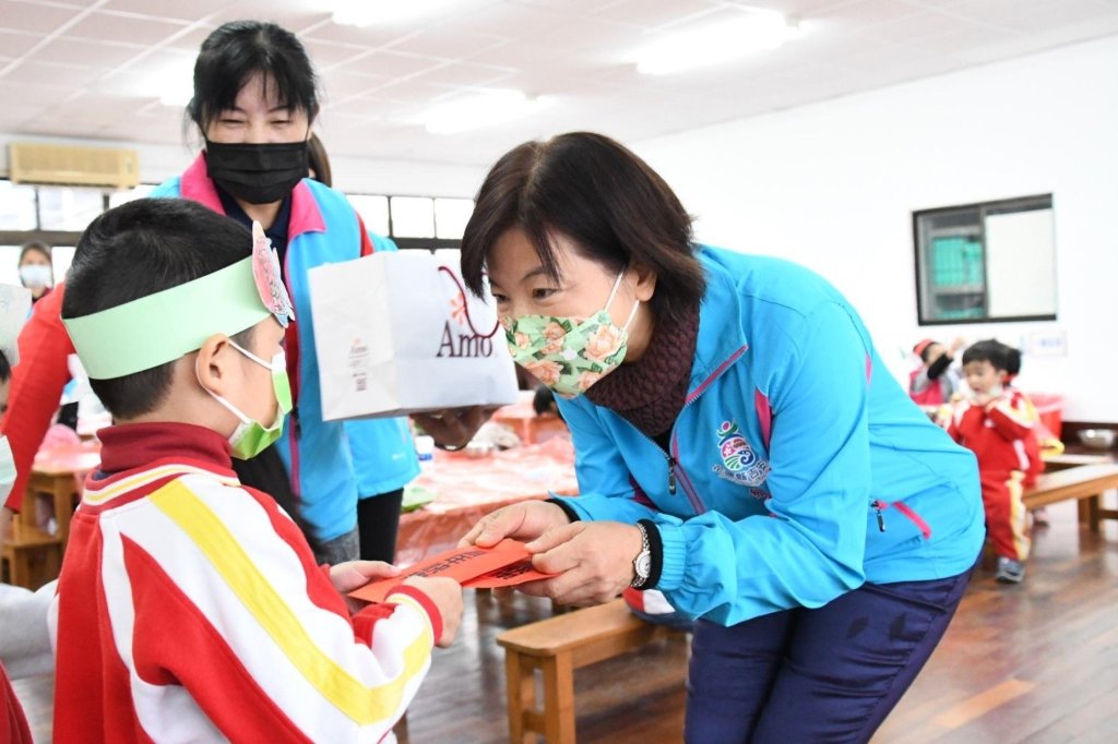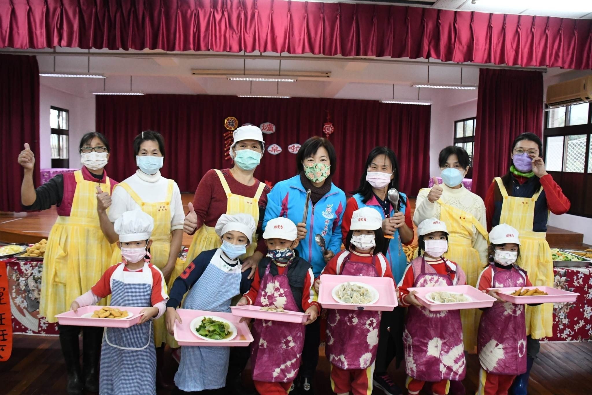 「新年恭喜!」小朋友們充滿朝氣地向鄉長游淑貞、公所課室所主管及師長們先拜早年。緊接由「香積組」小小服務生負責八菜一湯上桌,小朋友們各個穿上圍裙、綁上花布頭巾、戴上小小廚師帽,聽著老師口令,展現敬業服務;鄉公所叔叔、阿姨們也擔任起「值日生」為寶貝們幸福加菜,其中游淑貞為每位小朋友準備一包乖乖祈願吉安鄉的寶貝們,新年乖乖平安喜樂,更期許他們健康快樂、成長茁壯,冀望在吉安鄉用心孕育下都能成為棟樑之才。