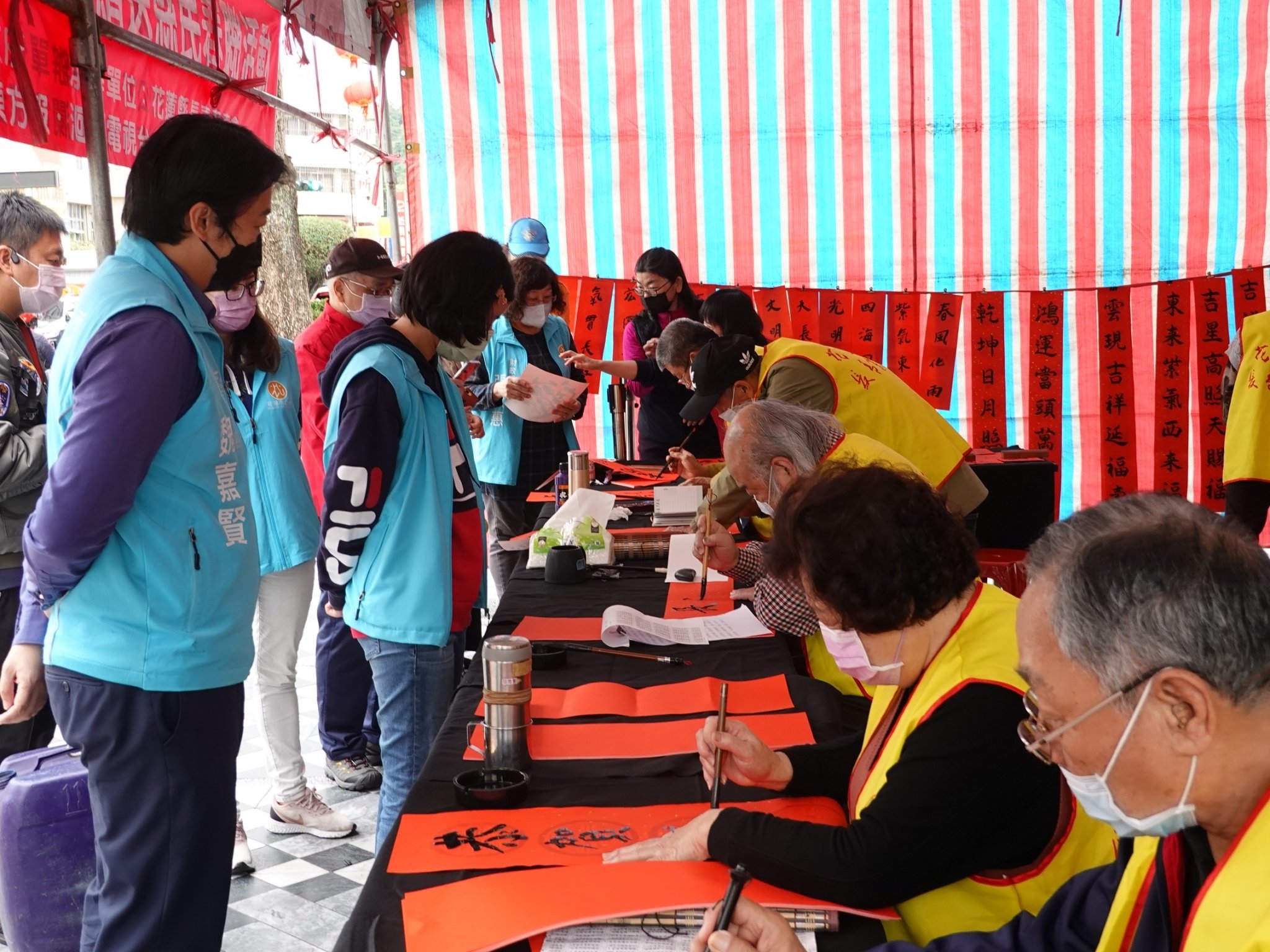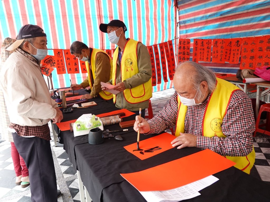 湯大凰表示,此次約有10名會員一起參與,有預先請會員寫好百幅春聯,另外也有在現場揮毫,今天預計2天發出千餘張的春聯,希望每位民眾都能拿到新年喜悅與祝福。