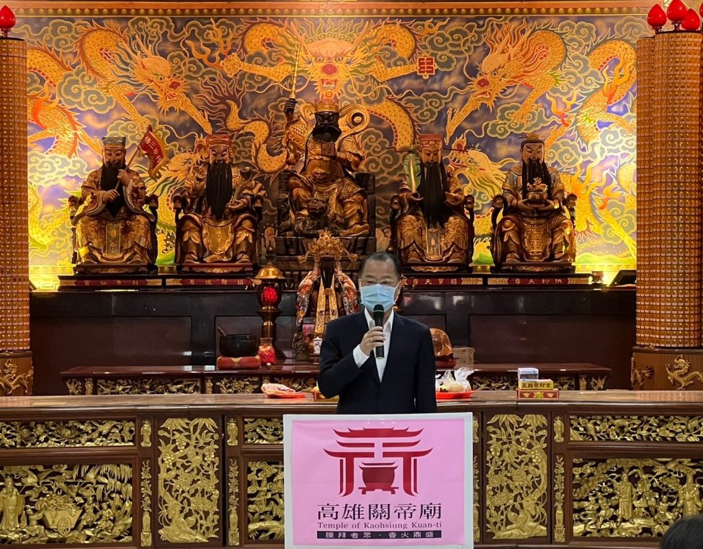 高雄市警局局長黃明昭表示,高雄關帝廟於苓雅區歷史悠久,也是居民的信仰中心,關帝廟本著弘揚關聖帝君之忠義精神,長期對社會公益不遺餘力及對市政推動的支持,除此之外,還成立「武廟教育基金會」,常年發放清寒獎助學金及賑濟低收入戶白米等物資,感謝關帝廟其善舉及對市府的支持,也祈求關聖帝君保佑市民平安健康。