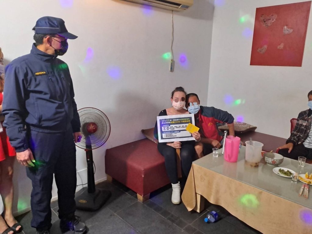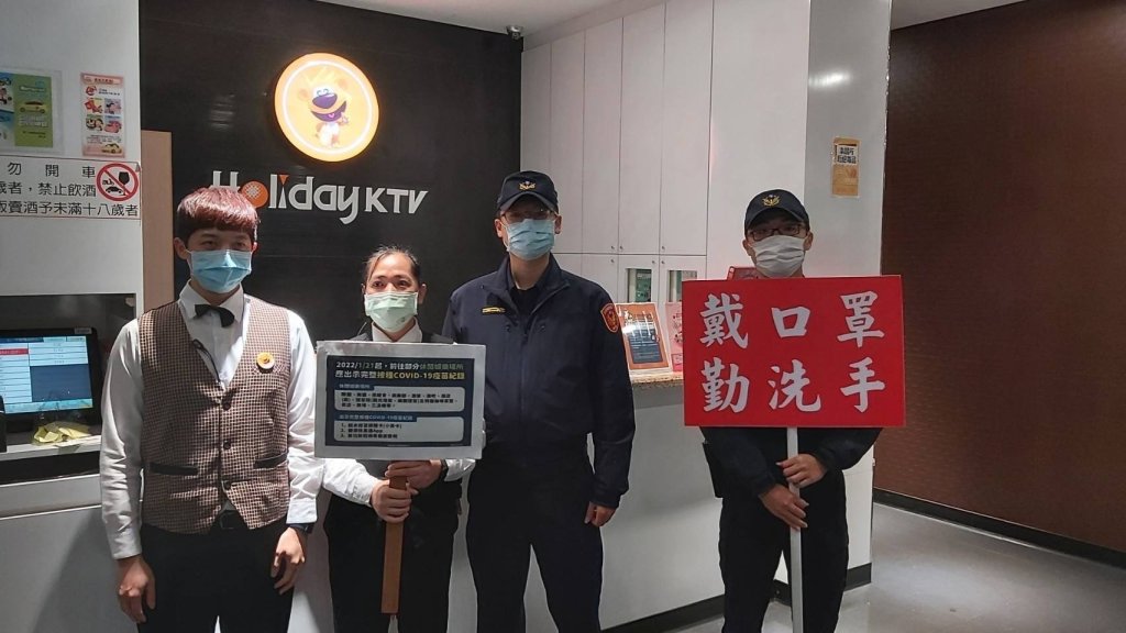 國內疫情受到Omicron新型變異株威脅,近日本土疫情有逐漸上升情事,在21日疫情指揮中心宣布本土新增23例及45例境外移入,已創今年度新高,造成人心惶惶;中央疫情指揮中心宣布昨21日起,前往歌廳、舞廳、夜總會、俱樂部、酒家、酒吧、酒店、理容院(觀光理髮、視聽理容)及特種咖啡茶室、夜店、舞場、三溫暖12處休閒娛樂場所時,應配合出示「完整接種COVID-19疫苗紀錄」,才能入內活動消費。為了配合疫情指揮中心最新防疫規定,昨21日晚間花蓮縣警察局玉里分局分局長温基興立即責由業務組長陳博宜親自帶隊執行防疫稽查勤務,前往轄內休閒娛樂場所執行稽查,同時製作文宣向前來消費的民眾宣導,期望各位鄉親進出休閒娛樂場所,應出示接種疫苗紀錄卡,來落實政府的最新防疫規定。