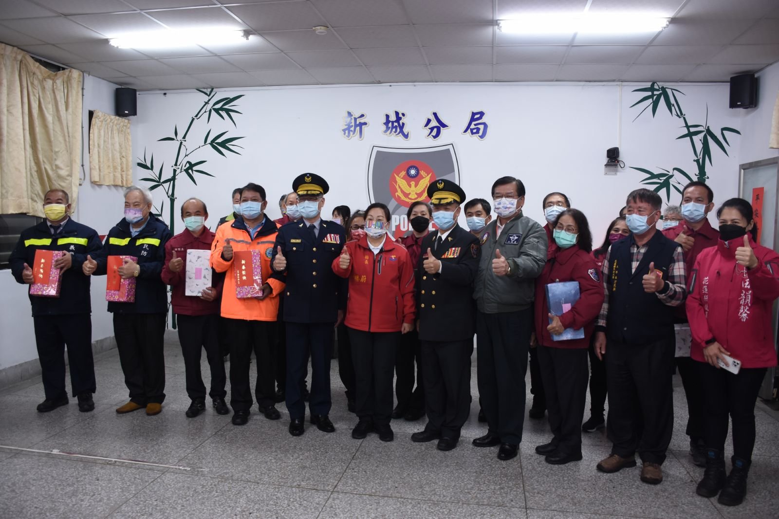 新城分局員警、消防局各分隊與新秀地區義警、民防、義消、巡守隊、警察志工皆派代表列隊歡迎,縣長徐榛蔚並一一與在場警消、民力握手鼓勵,並致贈紅包,領到紅包的員警皆表示高興,相信可以帶來一年的好運。