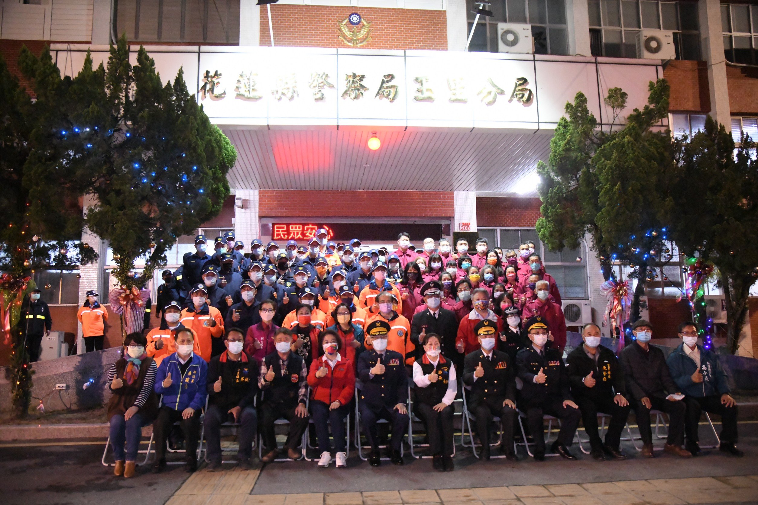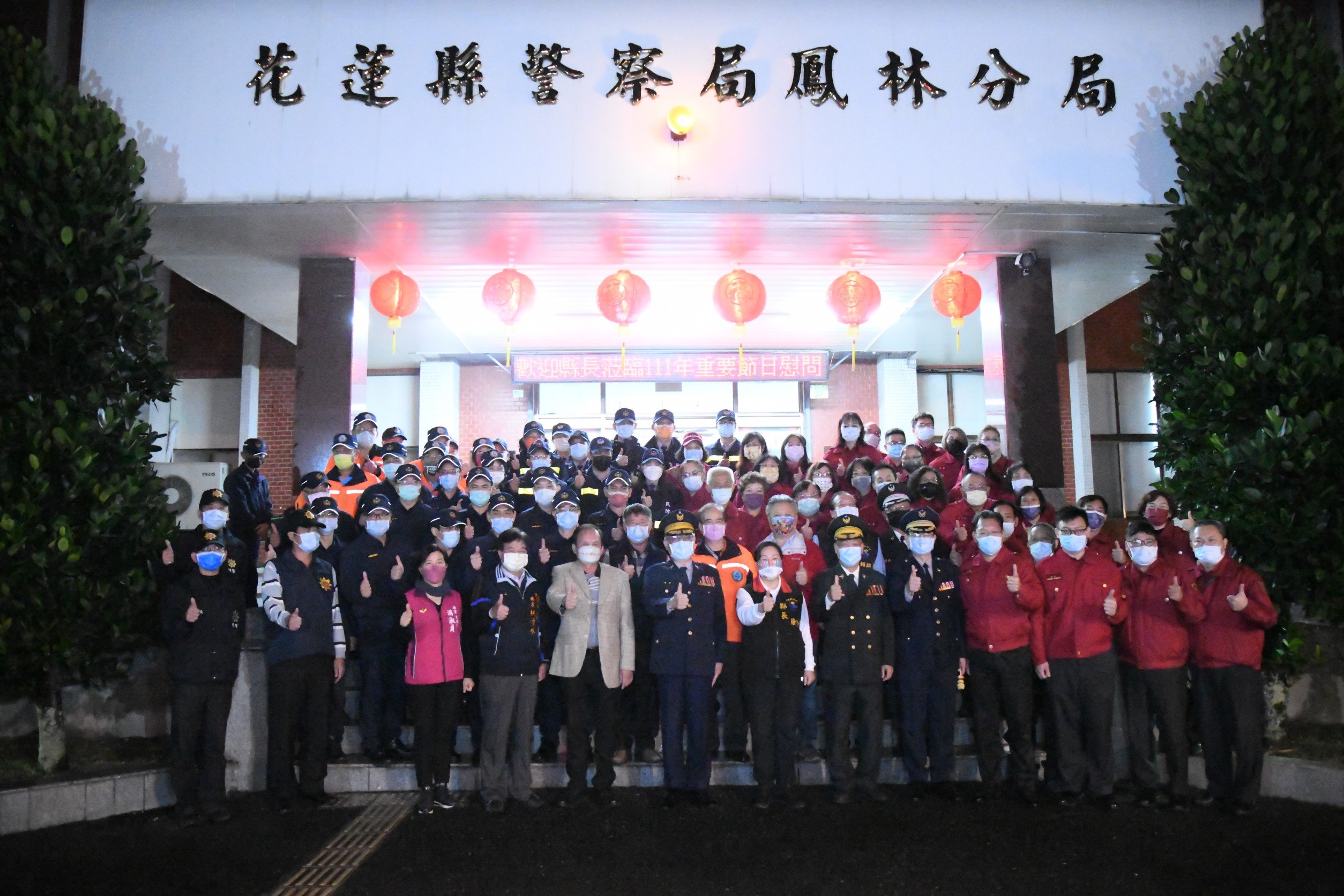 立法委員傅崐萁、花蓮縣議會副議長潘月霞、議員陳建忠、高小成、黃玲蘭、張懷文、徐雪玉、黃馨、吳東昇、田韻馨、鄭寶秀、玉里鎮長蔡秋龍、卓溪鄉長呂必賢、光復鄉長林清水、鳳林鎮長蕭文龍、吉安鄉長游淑貞、新城鄉長何禮臺等人皆到場慰問春安執勤人員,希冀年節期間花蓮縣的治安、交通、消防公安等都能團隊合作有效運轉,共創和諧平安的家園,讓辛苦的同仁及協勤民力能感受到溫馨的佳節送暖之意。