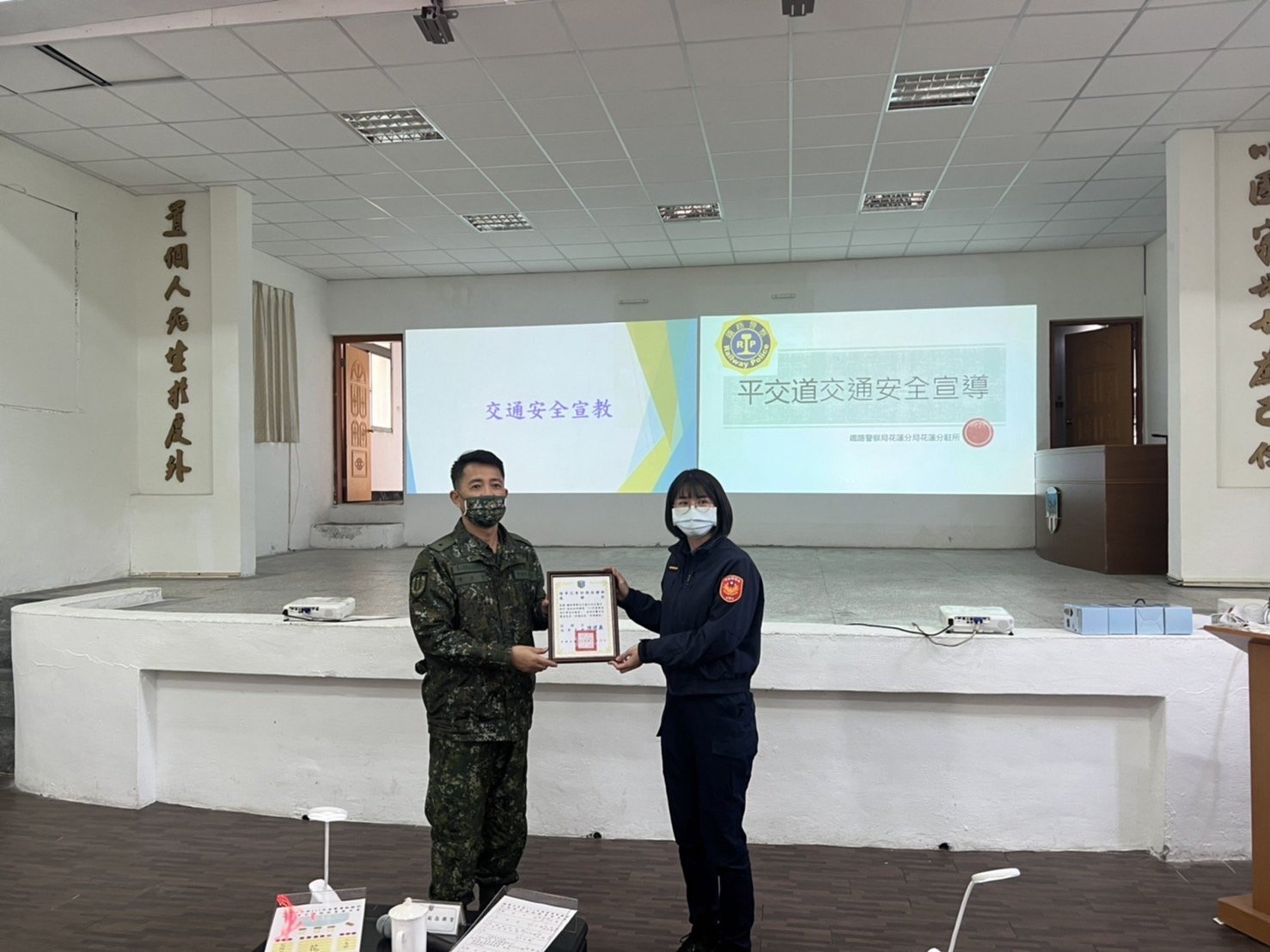 因應春節將近,尾牙宴和餐敘增多,除了向在場的國軍長官及弟兄宣導拒絕酒後駕車的重要觀念,並建議可利用「指定駕駛」「酒後代駕」及「代客叫計程車」等措施,防制酒駕發生,鐵警將持續同步執法與宣導工作,展現防制酒駕的決心。