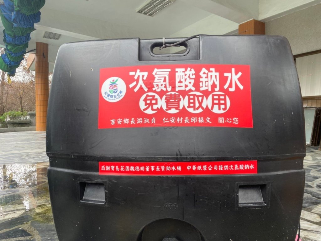 吉安鄉公所為方便鄉親隨時可以灑掃使用,協力十八村以一村一供應站方式,提供民眾做好家戶清消維護工作,清潔隊定期前往華紙裝取次氯酸鈉原液,依比例稀釋後分送各供應站,更會派員加強巡視隨時補給。游淑貞說,感謝中華紙漿公司花蓮廠和寶島花園魏德明董事長,分別無償提供次氯酸鈉水和贊助添購次氯酸鈉水容器設備,讓家戶的清消自主管理工作更為實務落實,也期盼在全民攜手合作之下,阻斷傳播鏈、守護健康、安心過新年。