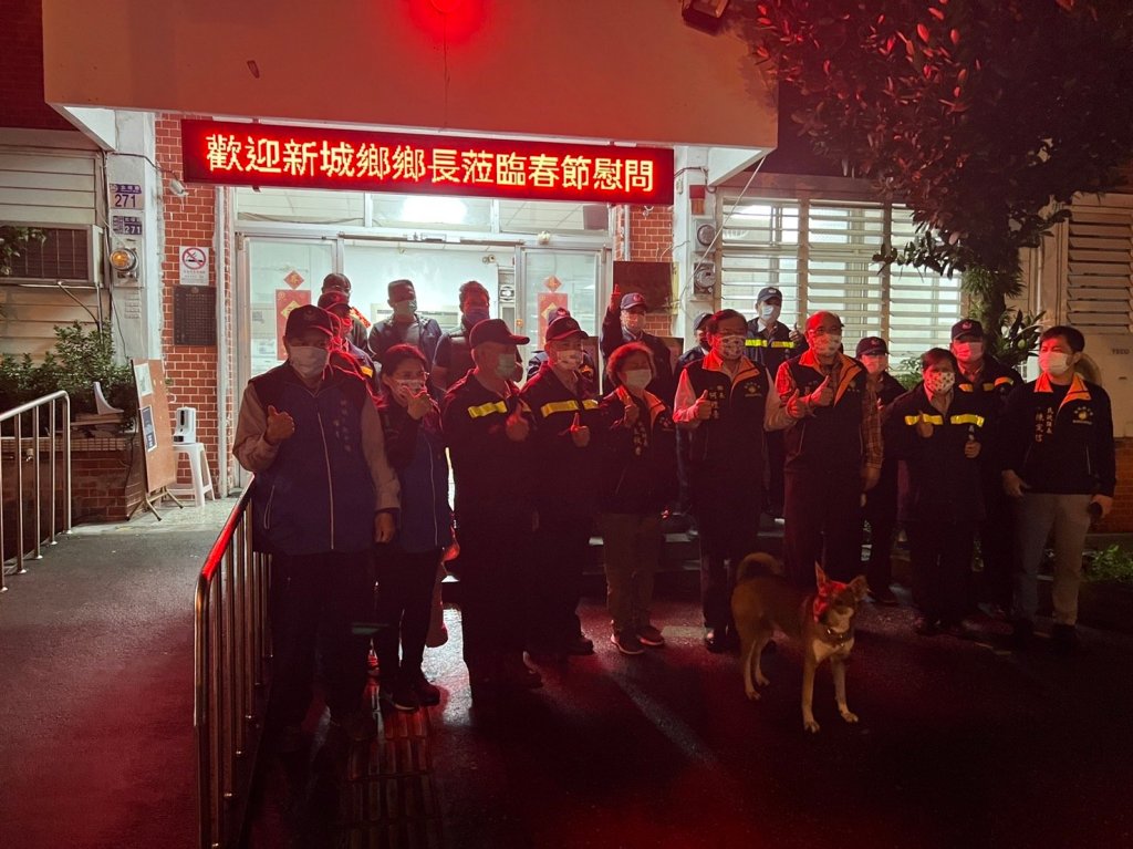 新城鄉鄉長何禮臺至新城鄉所轄的各派出所,慰問春節「加強重要節日安全維護工作」執勤人員之辛勞,致贈福袋、口罩及物資感謝員警及協勤民力(義警、民防、巡守隊)的辛勞,並祝大家新年快樂。