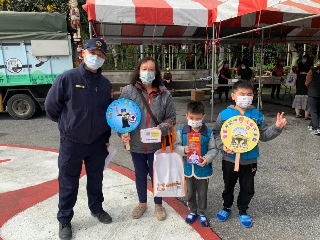 花蓮縣政府今26日於新城鄉、秀林鄉舉辦「111年度幸福花蓮三節(春節)生活物資發放」活動,為能在佳節前夕發放生活物資關懷鄉親,讓民眾提前感受到縣府的溫暖,特在本日舉辦如此溫馨的活動,新城警分局也藉此次機會前往現場實施交通安全宣導,讓民眾提升自我防護意識。