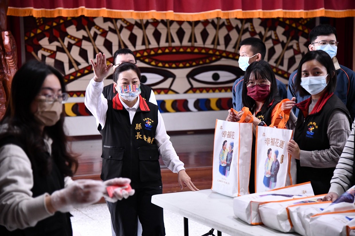 花蓮縣政府111年度幸福花蓮三節(春節)生活物資發放,共發放1萬4,200份白米。今(26)日於秀林鄉秀林村多功能集會所與新城鄉原住民多功能活動中心進行發放,為本次春節物資發放畫下句點。縣長徐榛蔚親自加入服務行列中,一邊親切問候一邊將物資交給民眾,讓民眾感受到年節氣氛。
