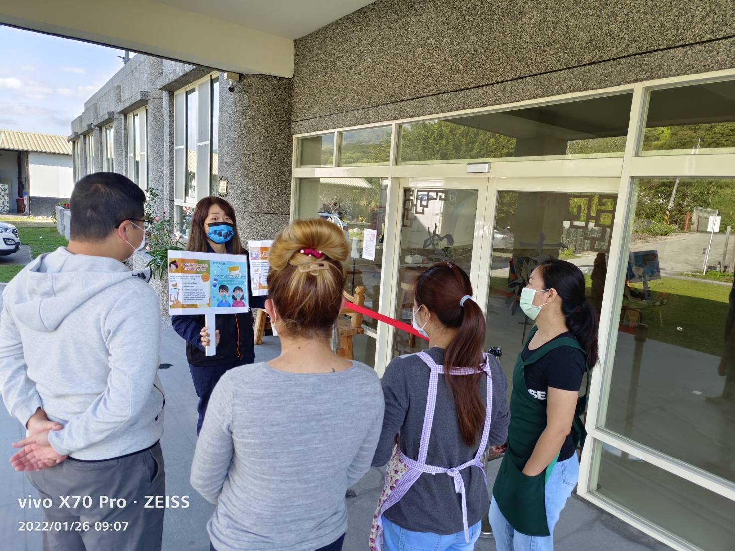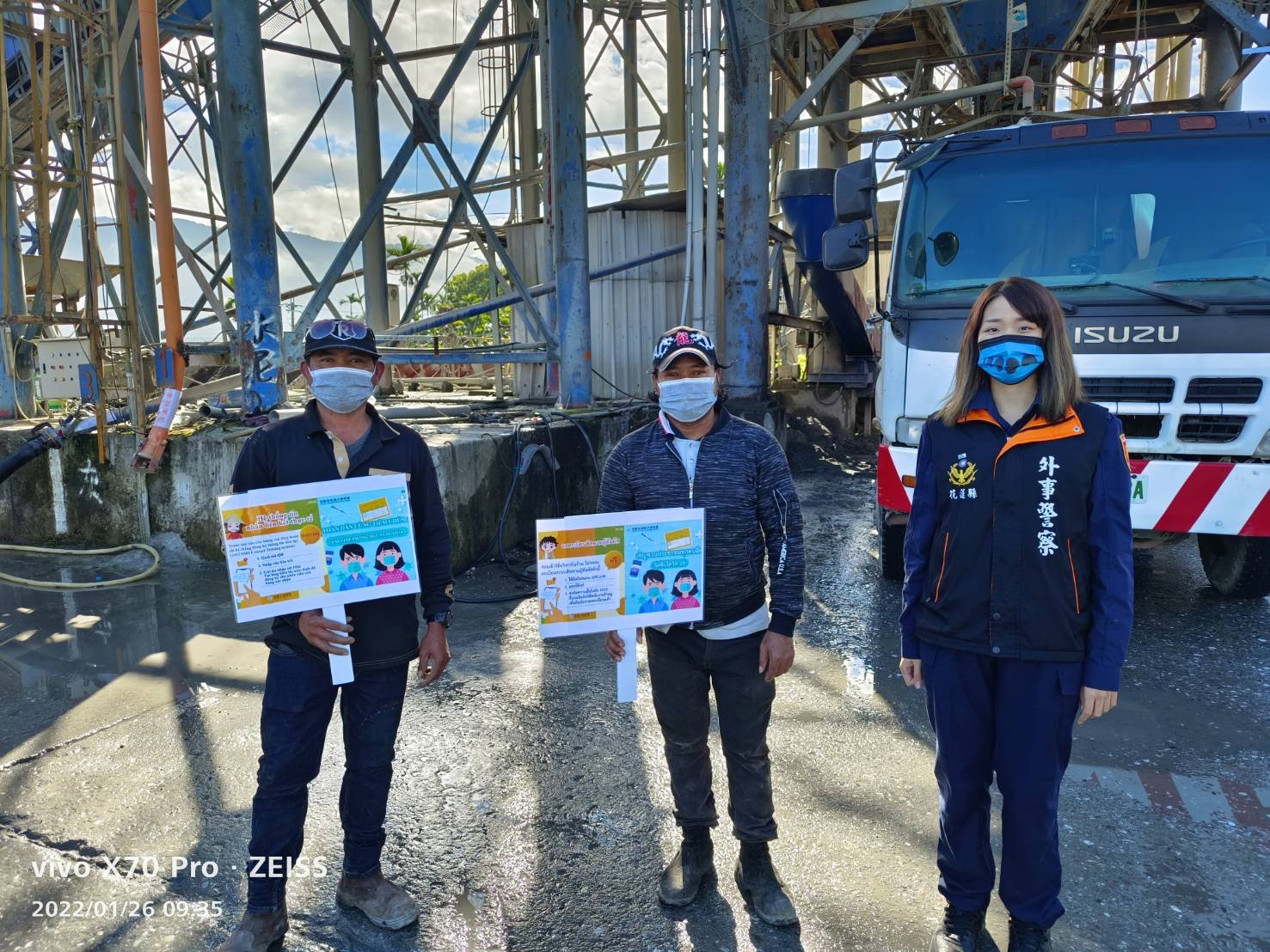 因應國內疫情受到Omicron新型變異株病毒威脅,導致近日本土疫情有上升情事,為防止移工朋友因為群聚而造成疫情傳播,昨(26)日主管外事業務第三組組長林國銘及外事業務承辦人警員陳奕涵透過訪視輔導方式,親至轄內2家老人安養中心(愛愛、長青老人照護中心)、展信砂石廠及格全食品等雇用較多移工公司加強宣導,希望移工朋友繼續遵守政府相關防疫規定以及落實防疫措施。