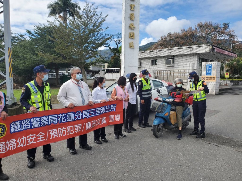 內政部警政署鐵路警察局花蓮分局玉里派出所為能讓年節繁忙的鐵路交通疏運順暢,於春節假期開始前由所長陳文郎帶領派出所同仁偕同玉里車站站長前往玉里鎮內交通繁忙度較高的榮民醫院平交道前,與熱心的鐵警婦女志工及堅守崗位的平交道保全員們一同向往來用路人宣導鐵路平交道交通安全,提醒用路人們在車輛駛入平交道前應注意平交道號誌及遮斷桿、看清鐵路兩方確無火車駛來、並與前車保持安全車距,等前車駛離平交道、並留有適當距離,而後車能安全通過時使得通過。若因為貪快搶道強行闖越平交道,罰緩金額最重高達新臺幣9萬元整,且需吊扣駕照,倘若因此肇事更將吊銷駕照,也會造成重大生命及財產損失,呼籲所有用路人不要心存僥倖而造成後悔莫及的結果。
