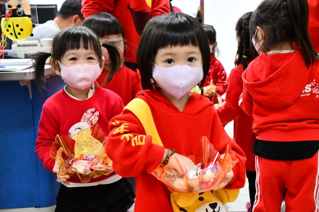 幼童們首先以國、台、客、英四種語言切換聲道,向鄉長媽咪以及公所全體工作人員拜年,緊接帶來一連串的新春賀歲勁歌熱舞,手舞足蹈的賣力演出,讓鄉長媽咪與主秘北杯也跟著邁開舞動腳步,為現場製造不少歡樂笑語。隨後,再由十名小班學童代表進入公所各課室所發送糖果,分享新年最甜蜜的祝福,鄉長游淑貞也準備「乖乖大禮包」回贈給所有孩童,期許每位吉安鄉的小小幼苗,都能夠平安、健康、快樂成長!