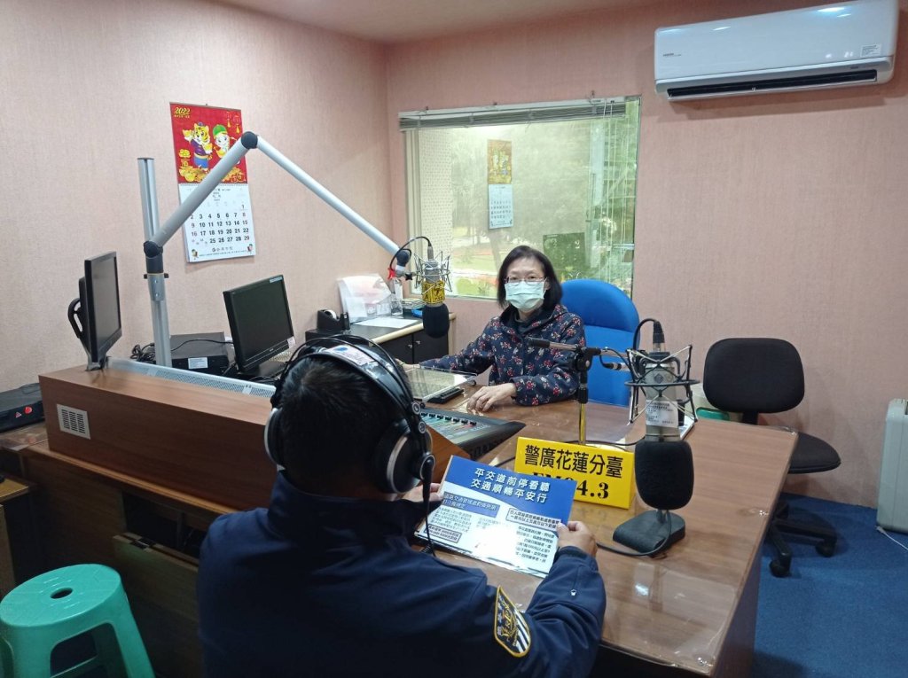 鐵路警察局花蓮分局玉里派出所於111年度春節連續假期展開前,派出暖男員警湯琦弘前往警察廣播電台花蓮分臺,要在空中向聽眾們宣導返鄉出遊前必知的犯罪預防、交通安全以及廉政觀念。