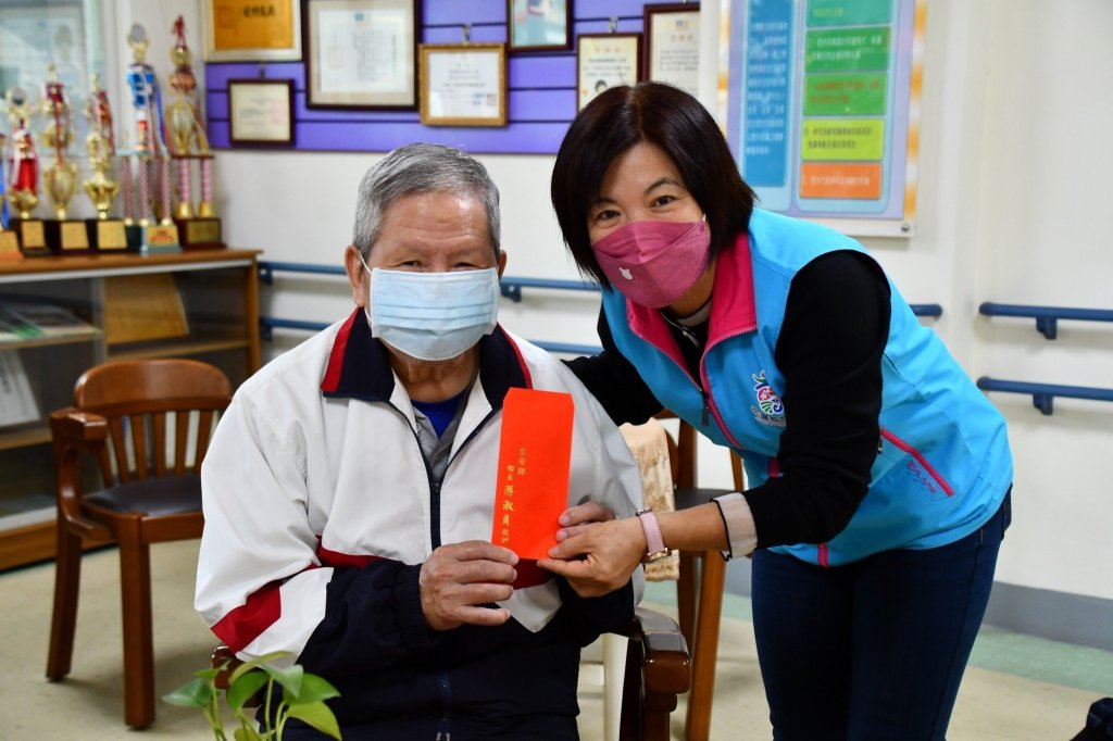 另鄉長游淑貞也於縣府頒佈禁止探視住宿型長照機構前,專程前往衛生福利部東區老人之家,在東區老人之家主任宋冀寧以及社會課長周澤生的陪同下,為29位來自吉安鄉的老大人送上吉祥喜氣的紅包。游淑貞說,感謝東區老人之家的悉心照料,在嚴謹的防疫措施與衛生管控下,讓長者們各個身體硬朗、容光煥發,同時享有最完善的健康照護。