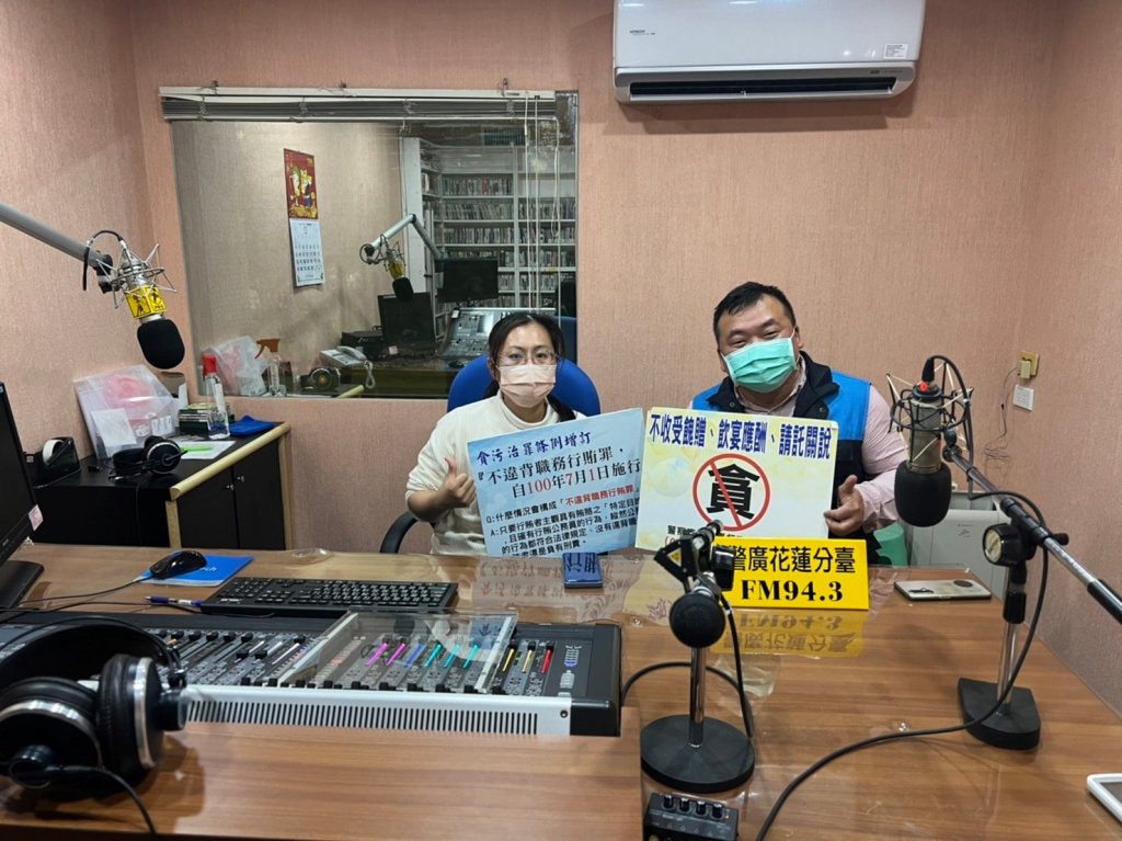 鐵路警察局花蓮分局副分局長陳家慶於日親往警察廣播電台花蓮分臺接受電台專訪,向警廣聽眾們進行宣導。