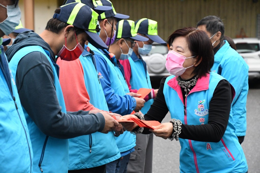 游淑貞感謝社會各界看見清潔隊服務動能,回饋滿滿的加值鼓勵,讓同仁維護鄉容時,也能感受來自民間的溫暖認同。她也在初四開工之日,為隊員們準備開工紅包以及聖南宮吉安媽的開運祝福,深切的感謝清潔隊無怨無悔堅守崗位全力維護環境整潔,作為永續發展最堅強的後盾,她貼心叮嚀所有勤務夥伴務必維護自身工作安全、注意行車動向,做好為民服務職責。