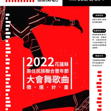 記者 謝廷瑋/花蓮報導 邀請花蓮縣民推薦喜愛的原住民族歌曲,並且有機會成為「2022原住民族聯合豐年節大會舞主 … More 「原住民族聯合豐年節大會舞歌曲徵選活動」起跑!!