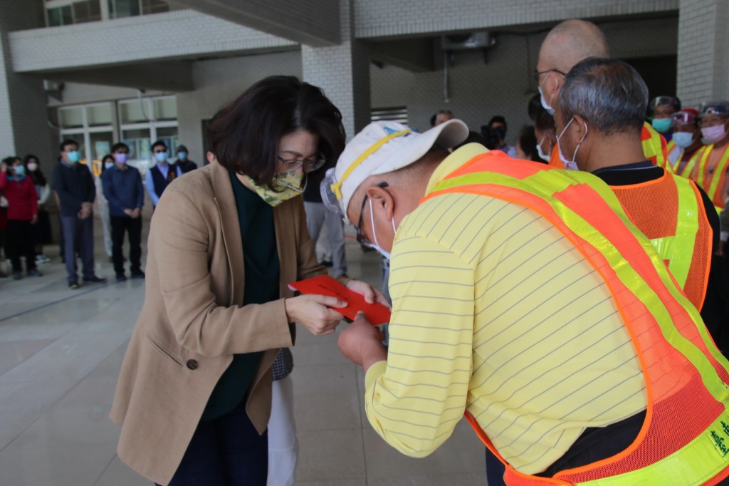 疫情升溫,臺東縣政府相關單位同仁春節期間持續堅守崗位,進行清潔消毒、搶災救難及交通管理等工作,縣長饒慶鈴今(9)日特別前往環保及消防局,致贈蘿蔔糕等點心慰勞春節執勤救災的消防同仁及清潔防疫人員,並前往警察局交通隊頒贈加菜金,感謝相關人員春節仍堅守第一線,維護縣民的健康安全;另提醒鄉親持續做好防疫措施,與縣府一起防堵疫情蔓延。
