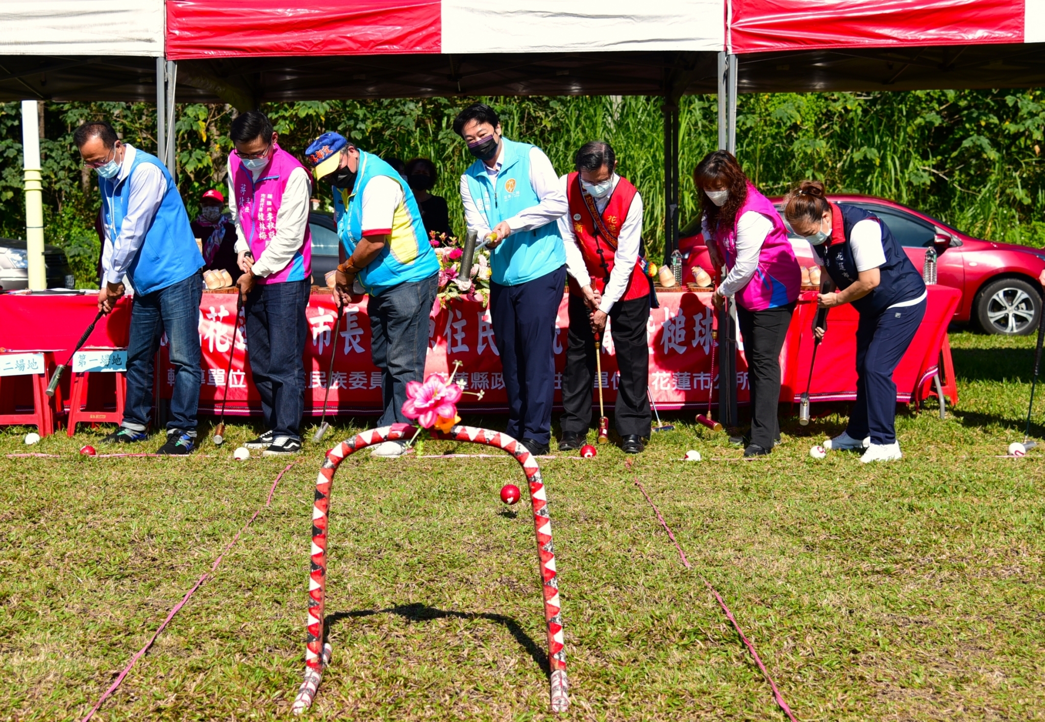 去年因疫情影響,籌辦多時的原住民傳統射箭暨槌球比賽被迫停辦,由於疫情逐漸趨緩,市公所在新的年度積極籌辦完成報名等事項,2022花蓮市市長盃原住民傳統射箭暨槌球比賽今天順利登場。魏嘉市長偕同原住民行政課長姜靜出席,到場為選手加油還包括花蓮市民代表蕭民隆、平島.部定、韓林梅、林百瑞、陳惠卿,以及花蓮縣政府北區服務中心副主任李光勝、縣議員李秋旺市民代表韓林梅聯合服務處主任游政霖,立委陳瑩花蓮縣服務處主任林沛琪等多人。