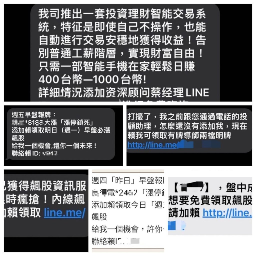 該集團成員先以亂槍打鳥方式隨機傳送簡訊連結,以提供被害人高報酬投資資訊為由,邀集被害人加入通訊軟體後,再以投資外匯、期貨可大幅獲利為話術,要求被害人加入投資群組,期間更不時有成員分享獲利成果,以取信被害人,俟被害人投入大筆金錢,帳上獲利欲出金時,再以各種理由推阻後失去聯繫,案經本大隊調閱相關資料確認犯嫌身分及藏匿處所,趁集團成員鄭姓車手甫進入超商取款,警方隨即一擁而上執行拘提逮捕,並於鄭嫌身上查扣金融卡、贓款及手機等物。